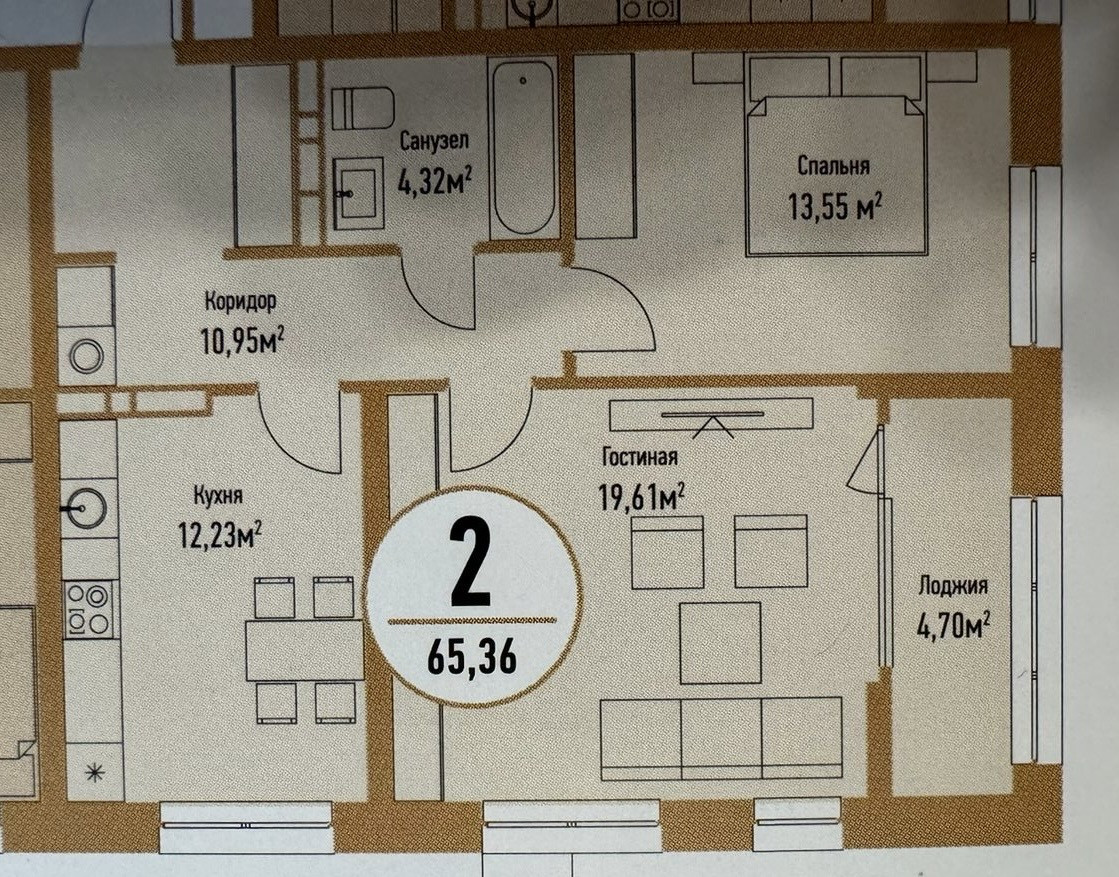 Общая площадь 65.3 м2