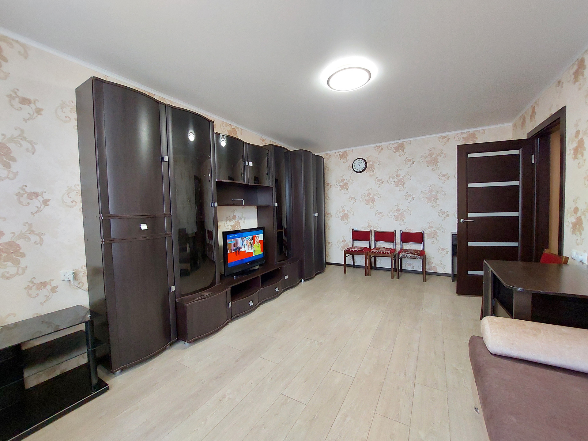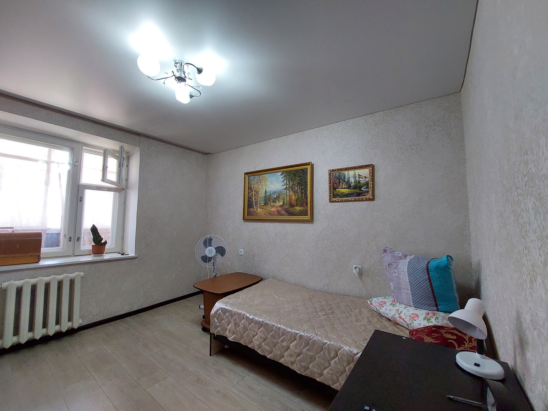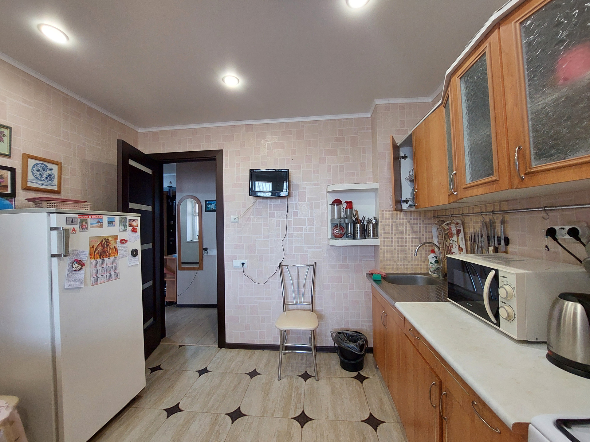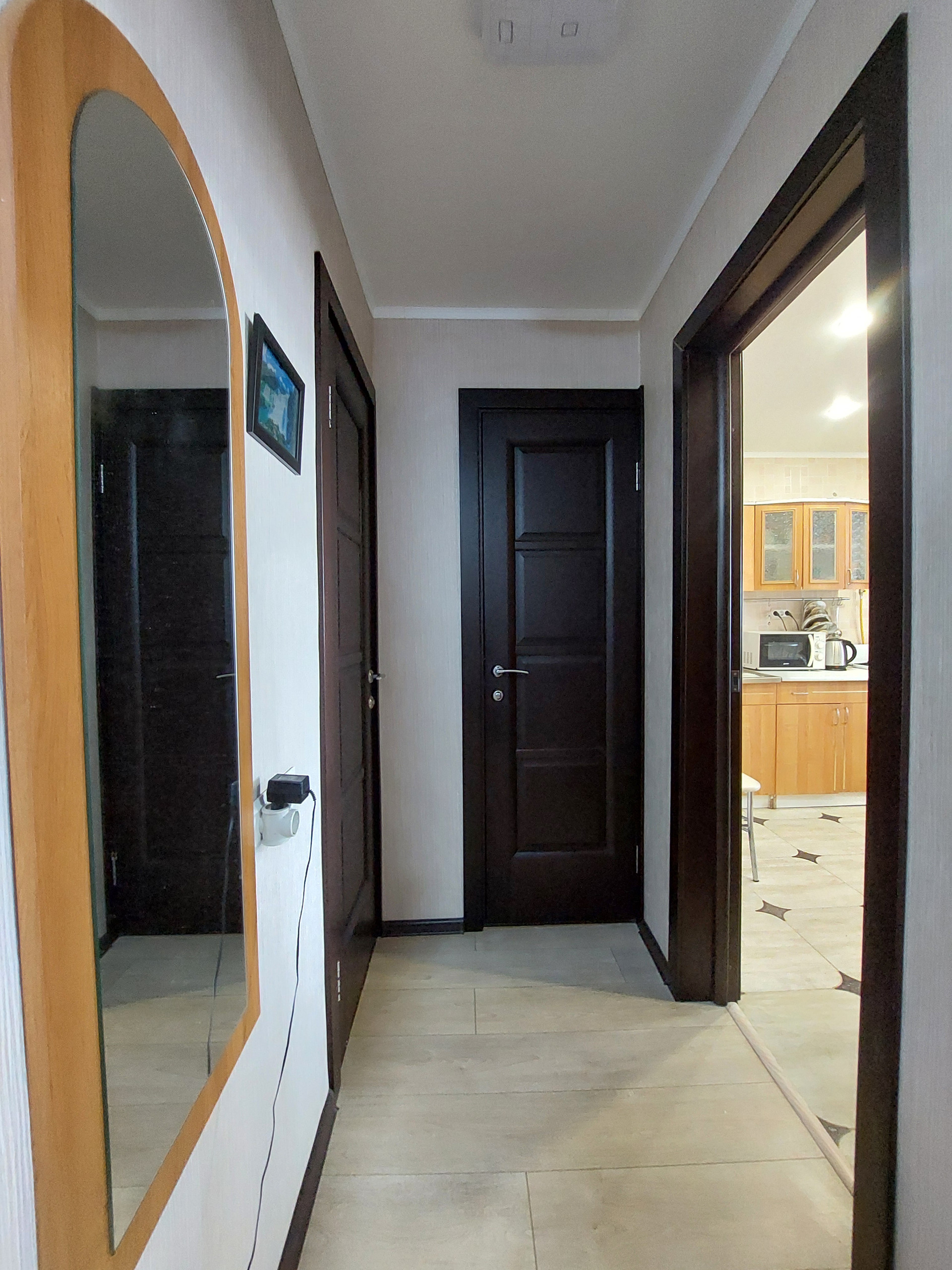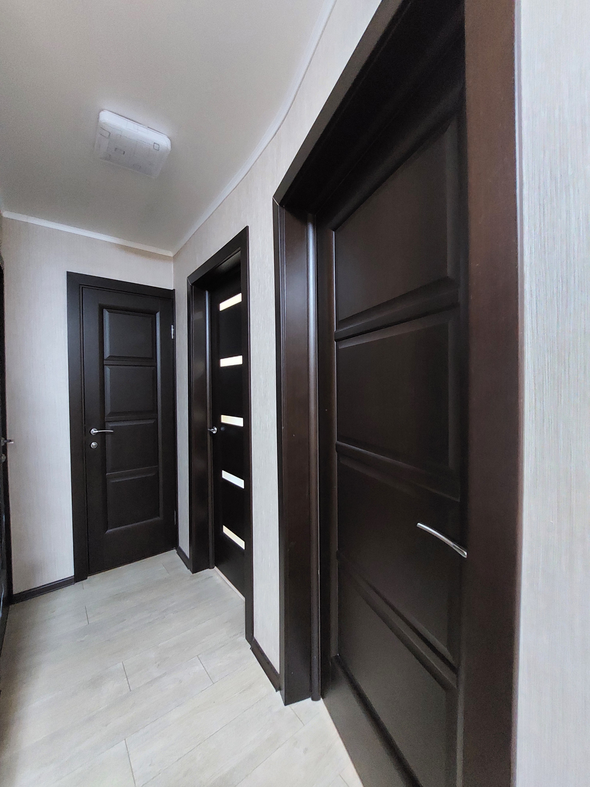 В каждой комнате натяжные потолки, создают чувство простора и комфорта. Пол покрыт стильным ламинатом во всех комнатах, в кухне - плитка. Пластиковые окна установлены в каждой комнате, кроме спальни. Вы сможете наслаждаться яркими и солнечными днями, наслаждаясь видом за окном. Межкомнатные деревянные двери создают атмосферу тепла и стиля, а входная дверь сейфового типа обеспечит вам дополнительную безопасность и покой. Санузел разделен, что очень удобно для семьи с детьми.