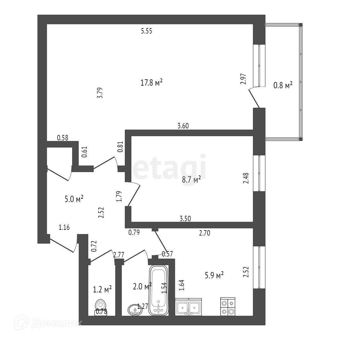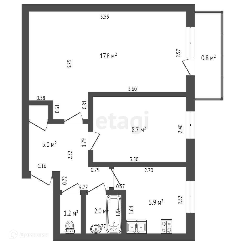 Площадь кухни 5.9 м2
