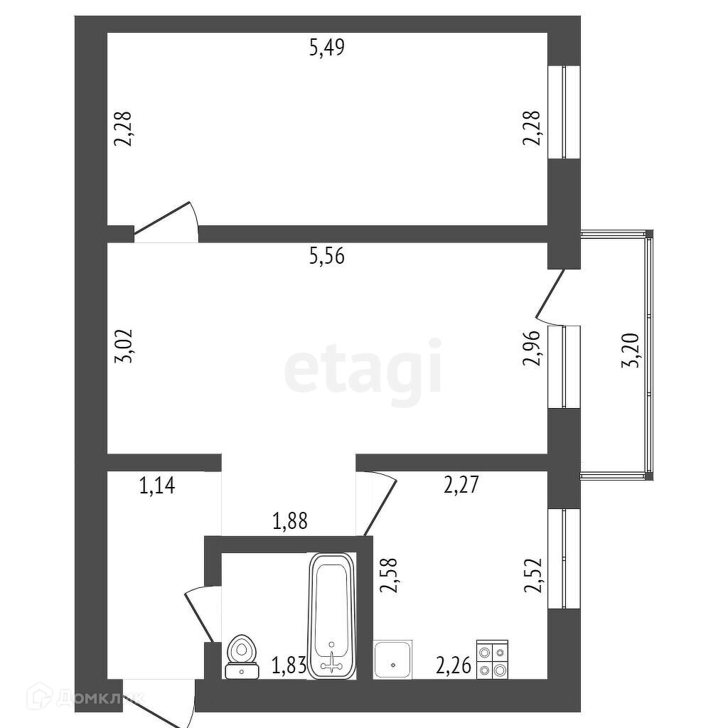 Балкон, лоджия 1 балкон