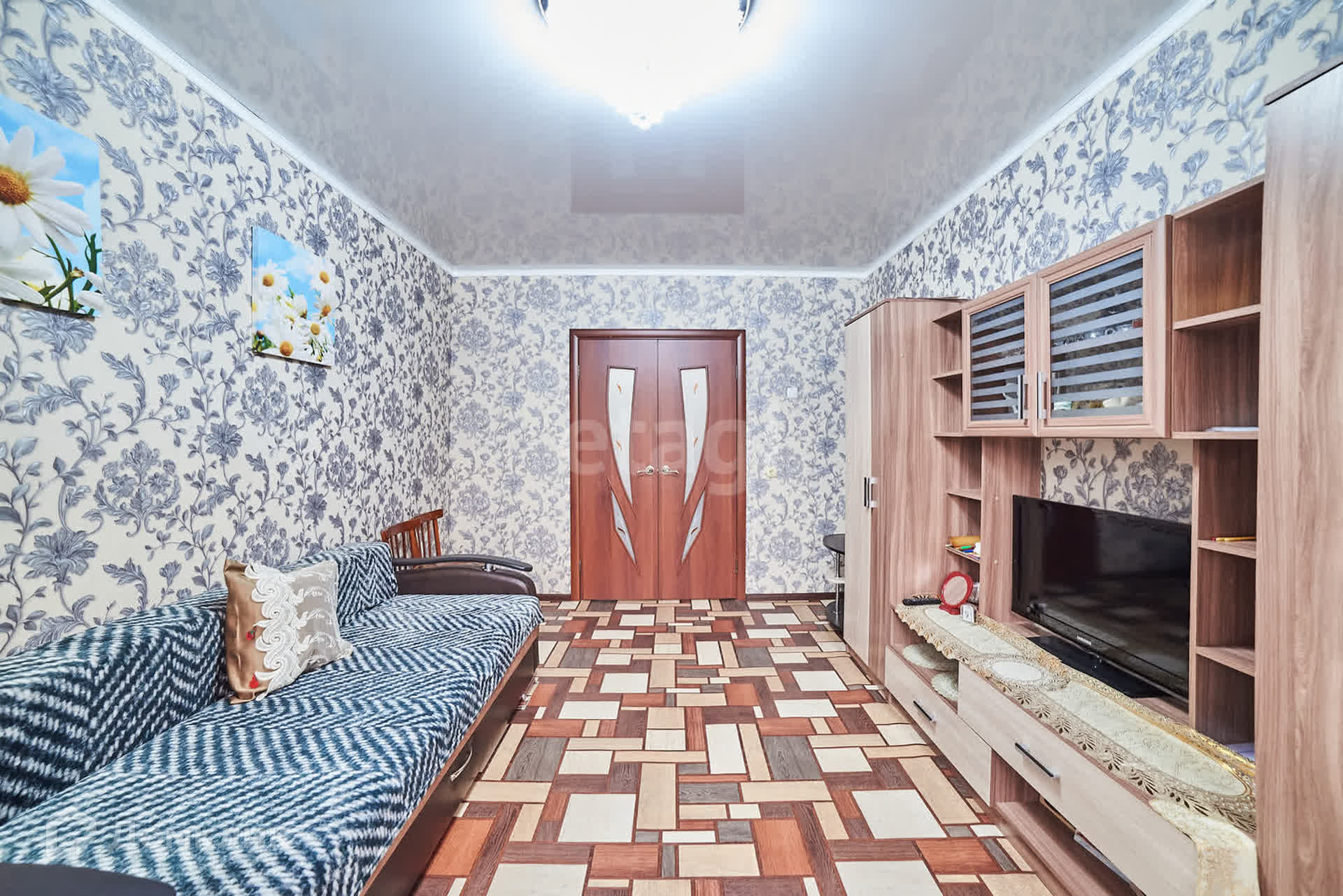Отделка: утепленный линолеум на войлочной основе и качественные флизелиновые обои