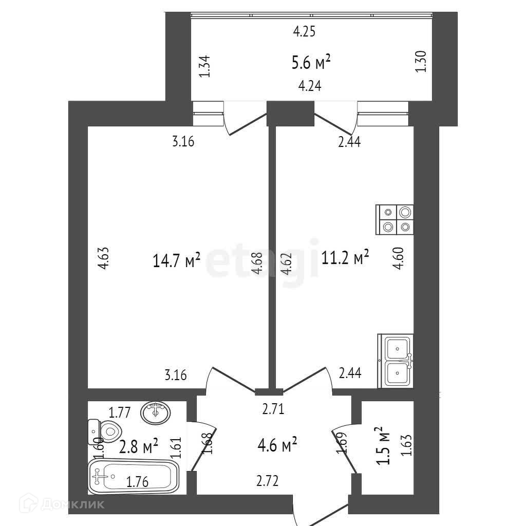 Балкон, лоджия 1 балкон