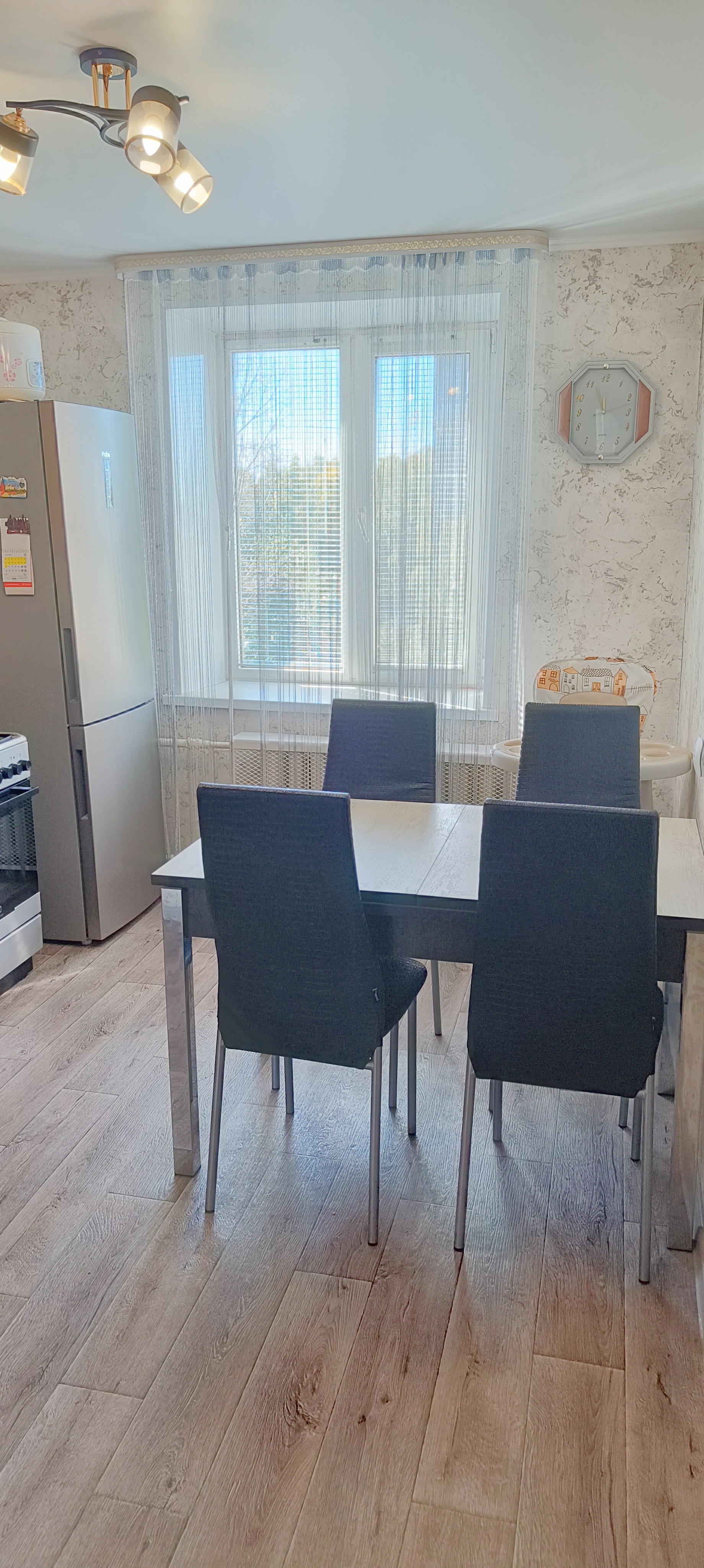 Продается уютная однокомнатная квартира с евроремонтом. Квартира располагается на последнем, пятом этаже кирпичного дома, построенного в 2003 году. Общая площадь квартиры составляет 43,7 кв. м, жилая площадь — 17,9 кв. м, площадь кухни — 10 кв. м. Высота потолков — 2,7 метра.