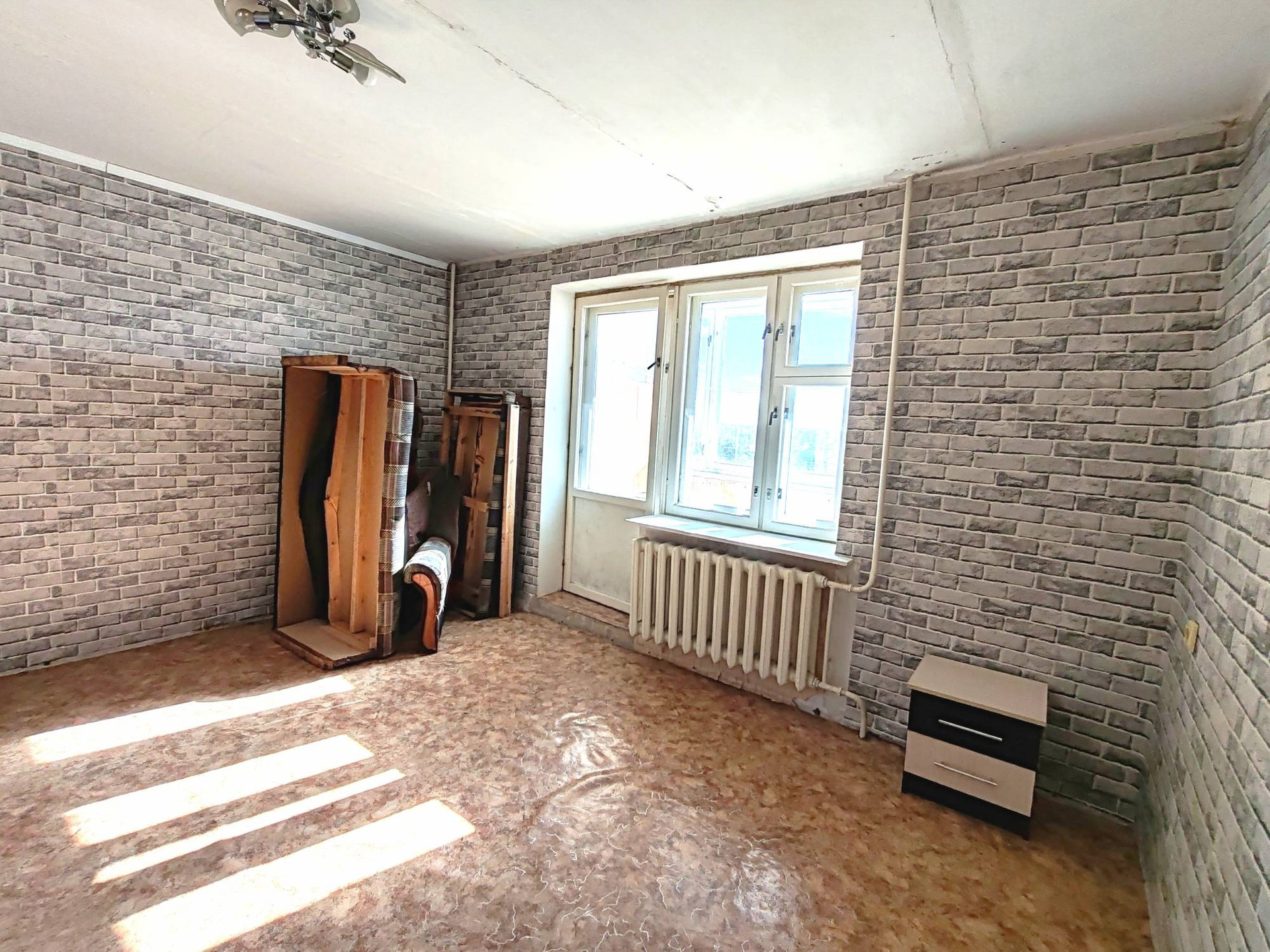 Зал с нишей. Лоджия широкая, застеклена. Санузел совмещен. Квартира очень тёплая и светлая.