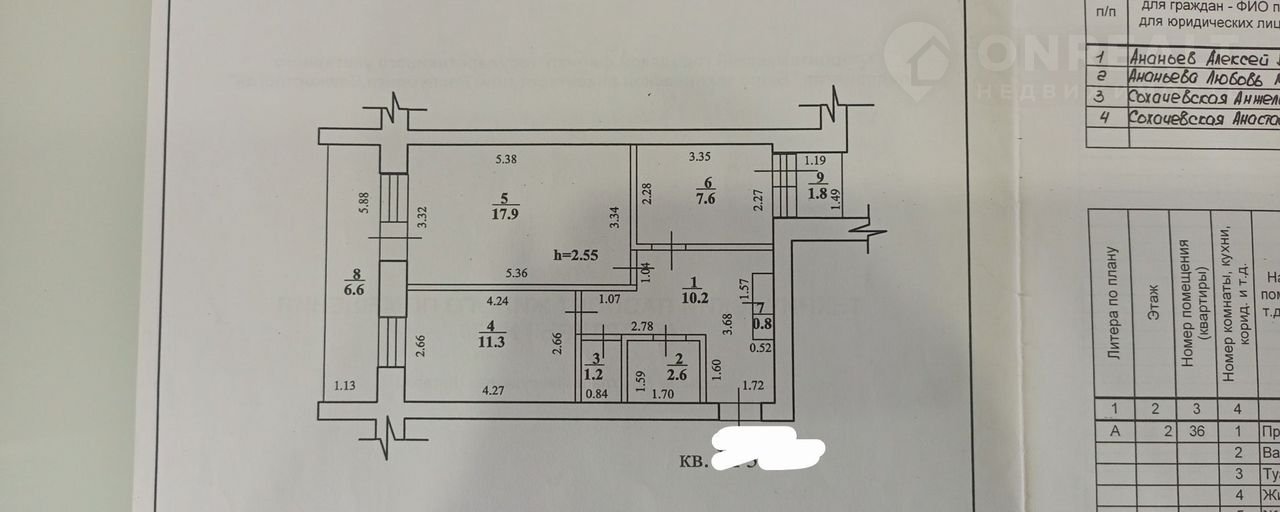 Общая площадь 56 м2