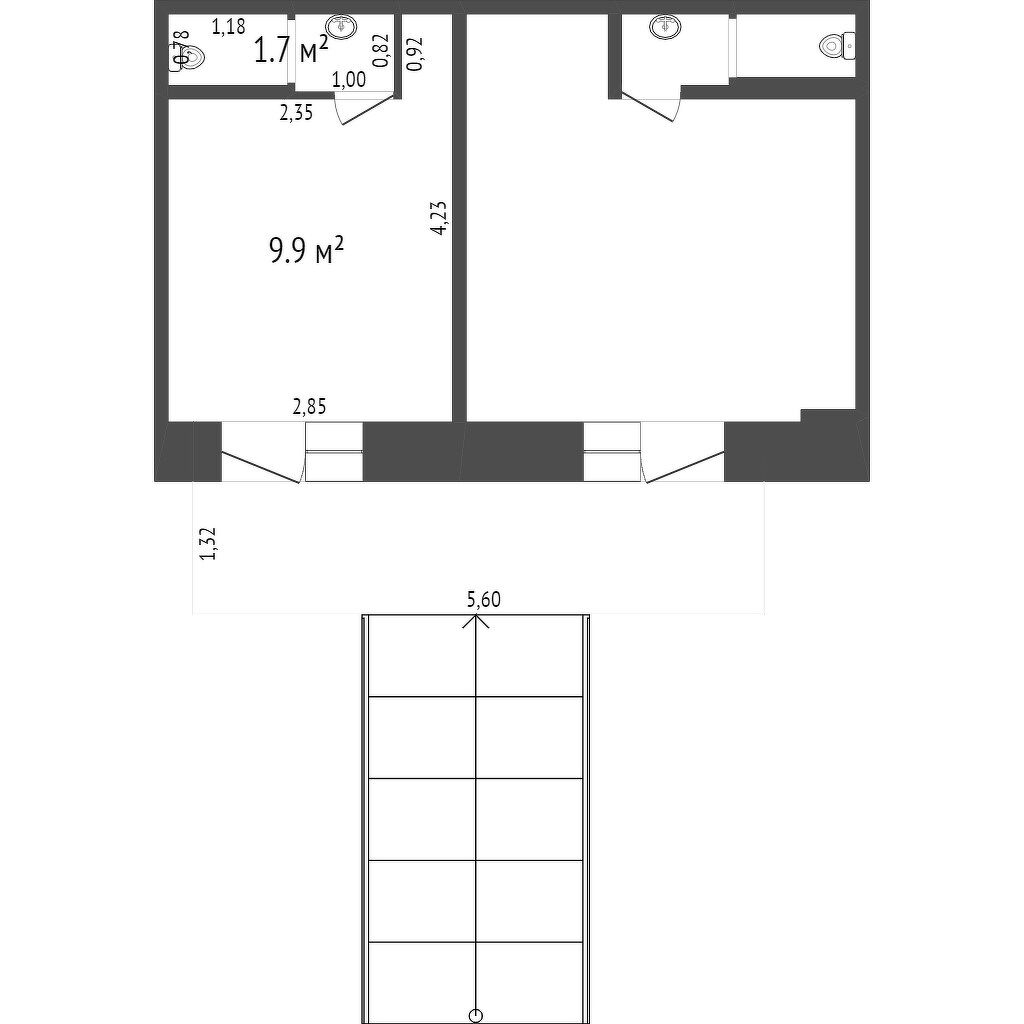 Общая площадь 11.6 м2