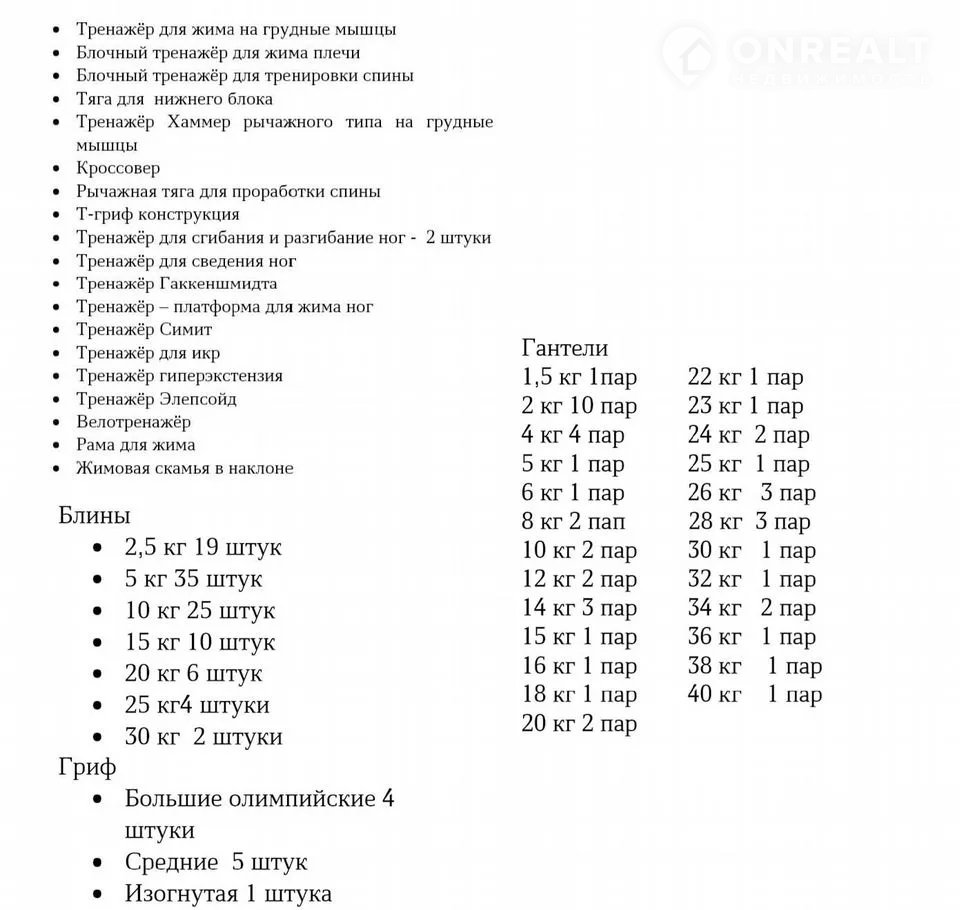 В помещении находится спорт зал, пять больших залов, зал для бокса, 4 раздевалки, душевые комнаты, 2 санузла