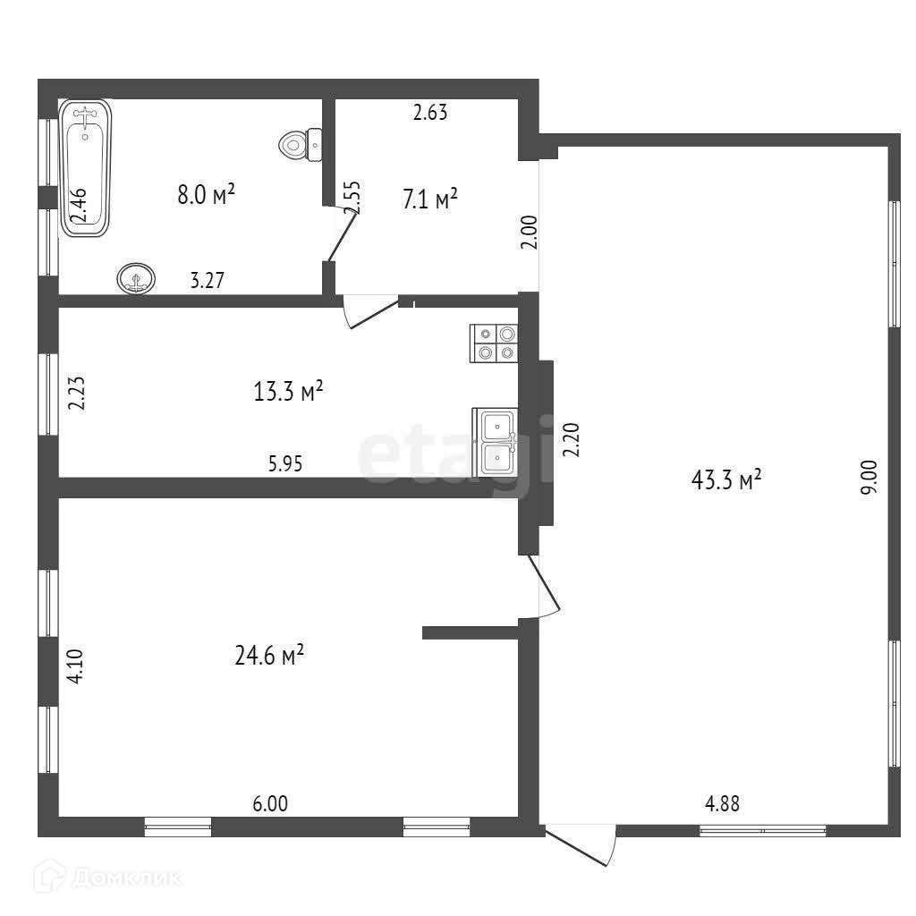 Общая площадь 95.5 м2