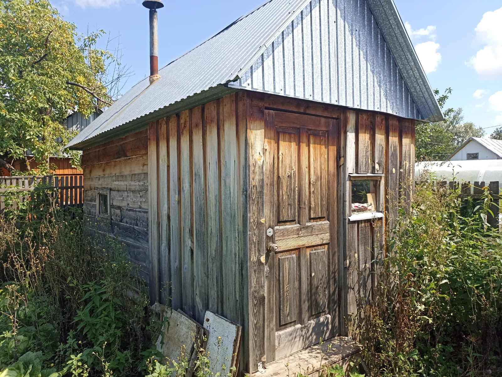 На участке современный дом с ремонтом,баня с хорошим ремонтом,туалет на улице