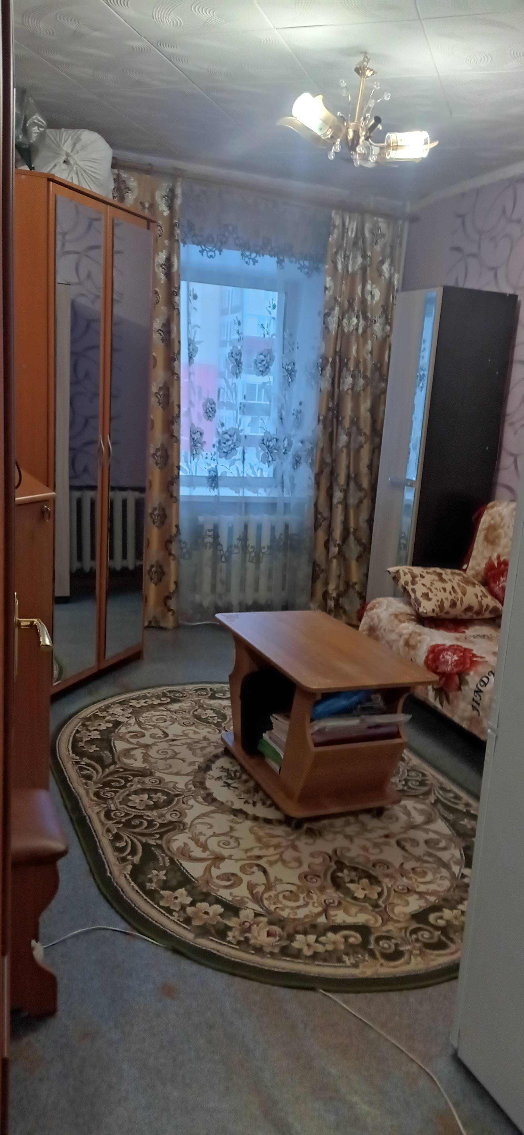 Продам комнату в общежитии. В собственности. В секции две комнаты. Душ и туалет на 2 хозяина. В комнате остаётся:столик, диван, комод, угловой шкаф. Светлая, тëплая и уютная комната. Общежитие находится в центре города, через дорогу находится спорткомплекс СОК"Нефтяник", 4-ая школа, сады, магазины.