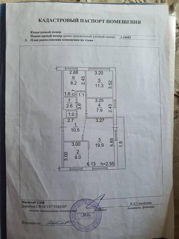 Высота потолков 2.55 м