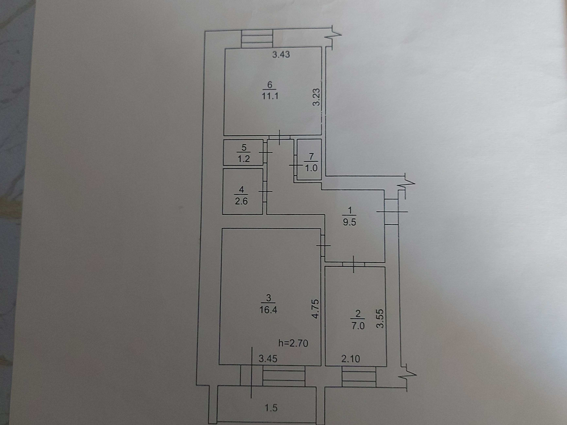 Общая площадь 50.3 м2