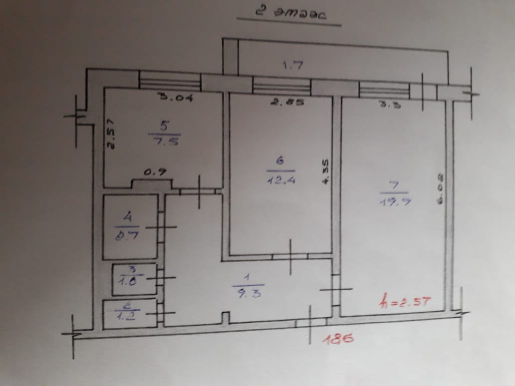 Высота потолков 2.57 м
