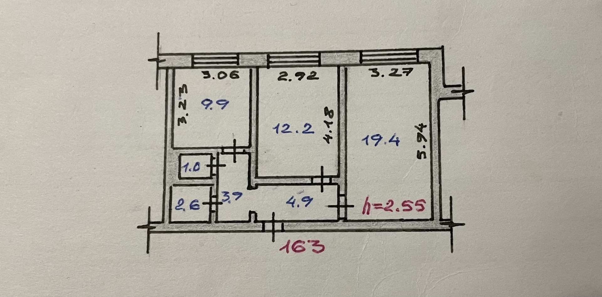 Высота потолков 2.55 м