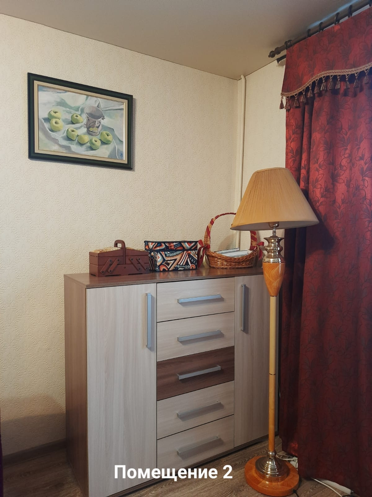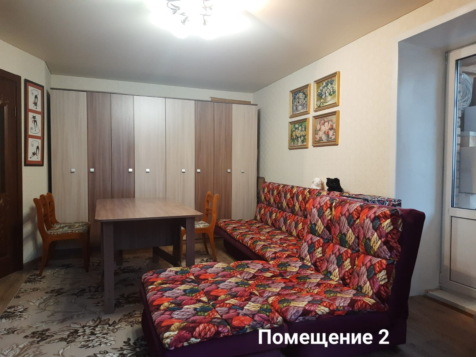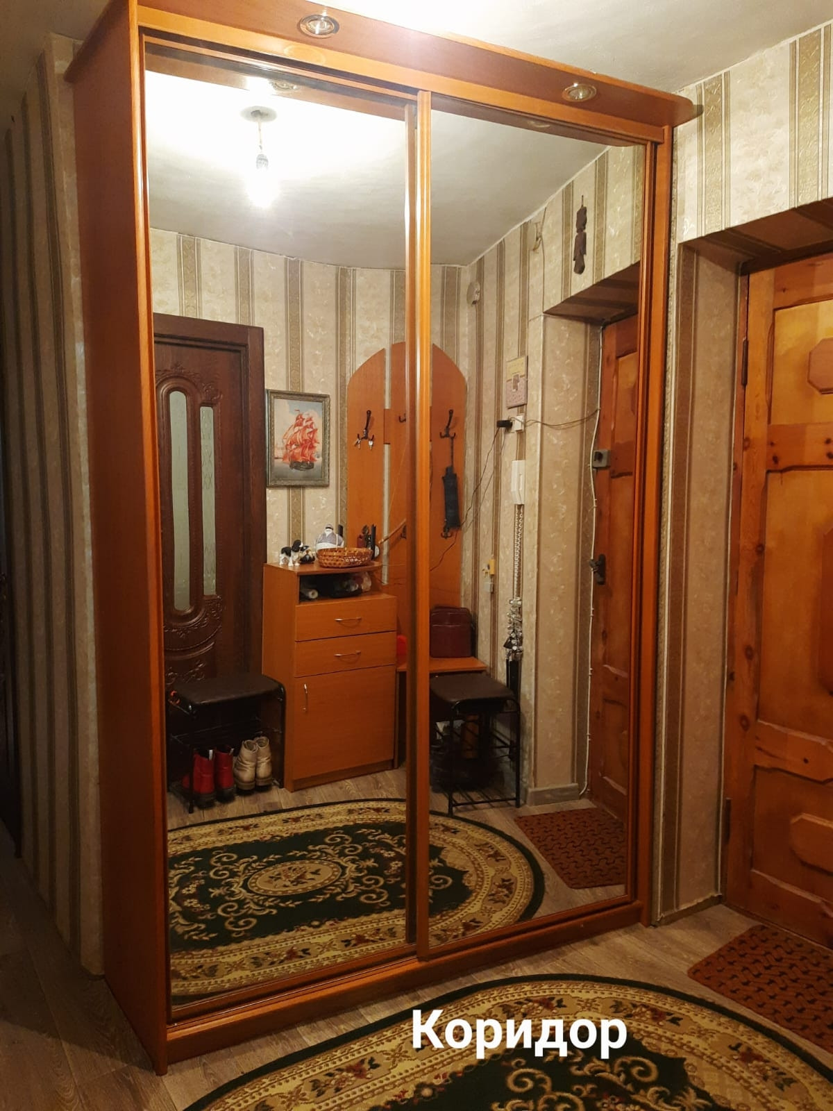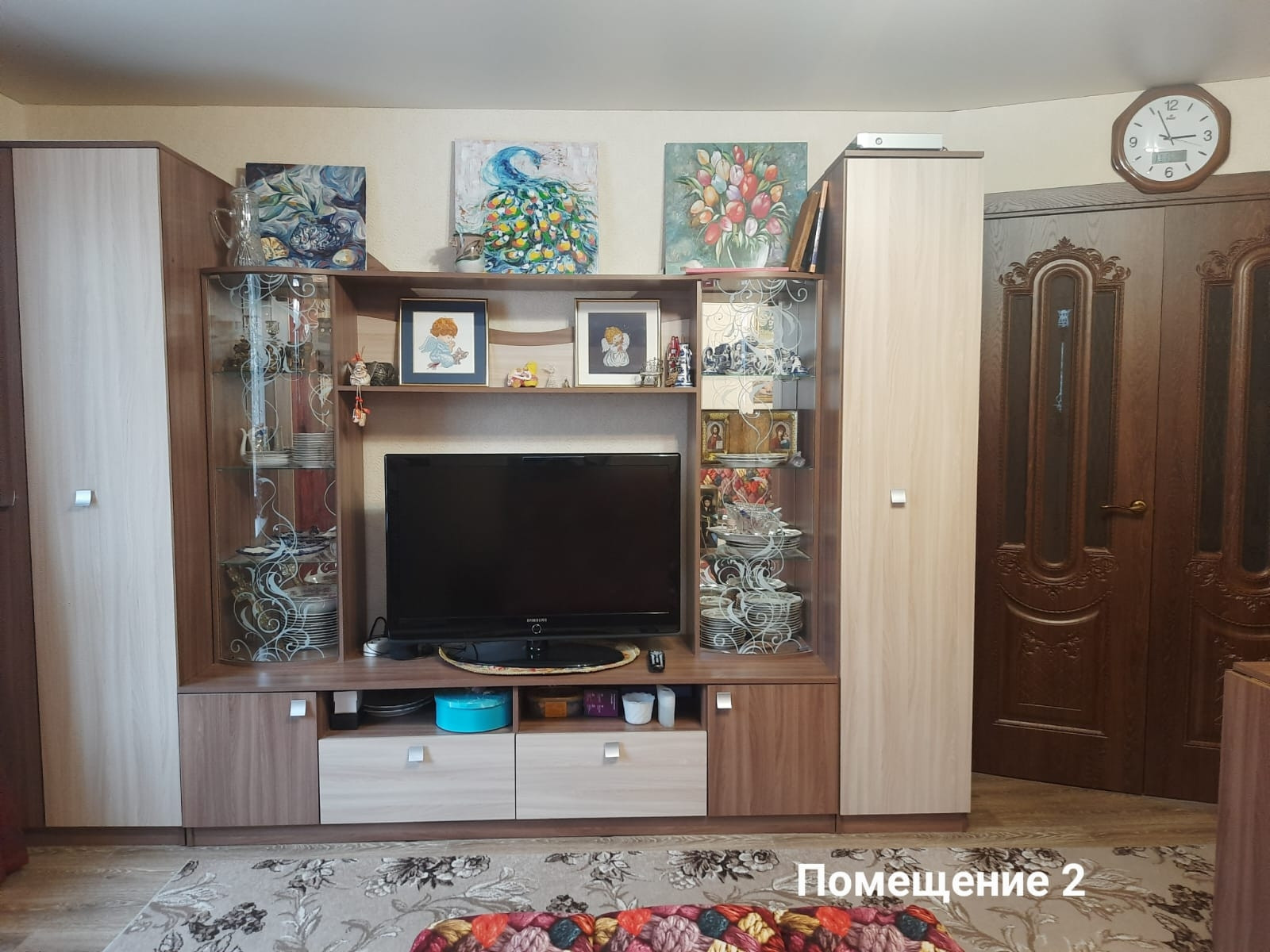 В квартире остаётся мебель: прихожая с встроенным гардеробом, два дивана, кресло-кровать, встроенный шкаф на всю стену для книг или других вещей, спальня, стенка со шкафами, комод, стол-книжка, кухонный гарнитур и другое.