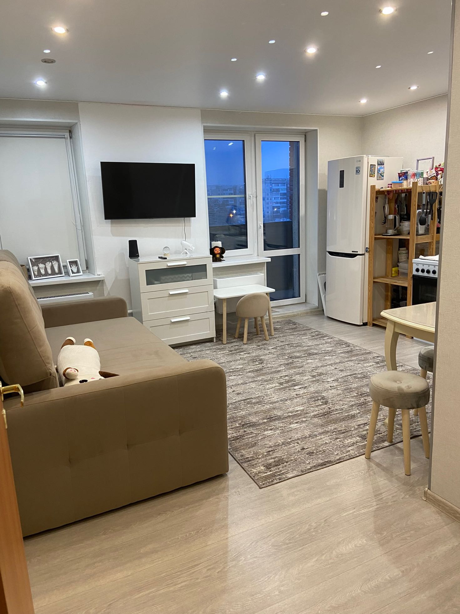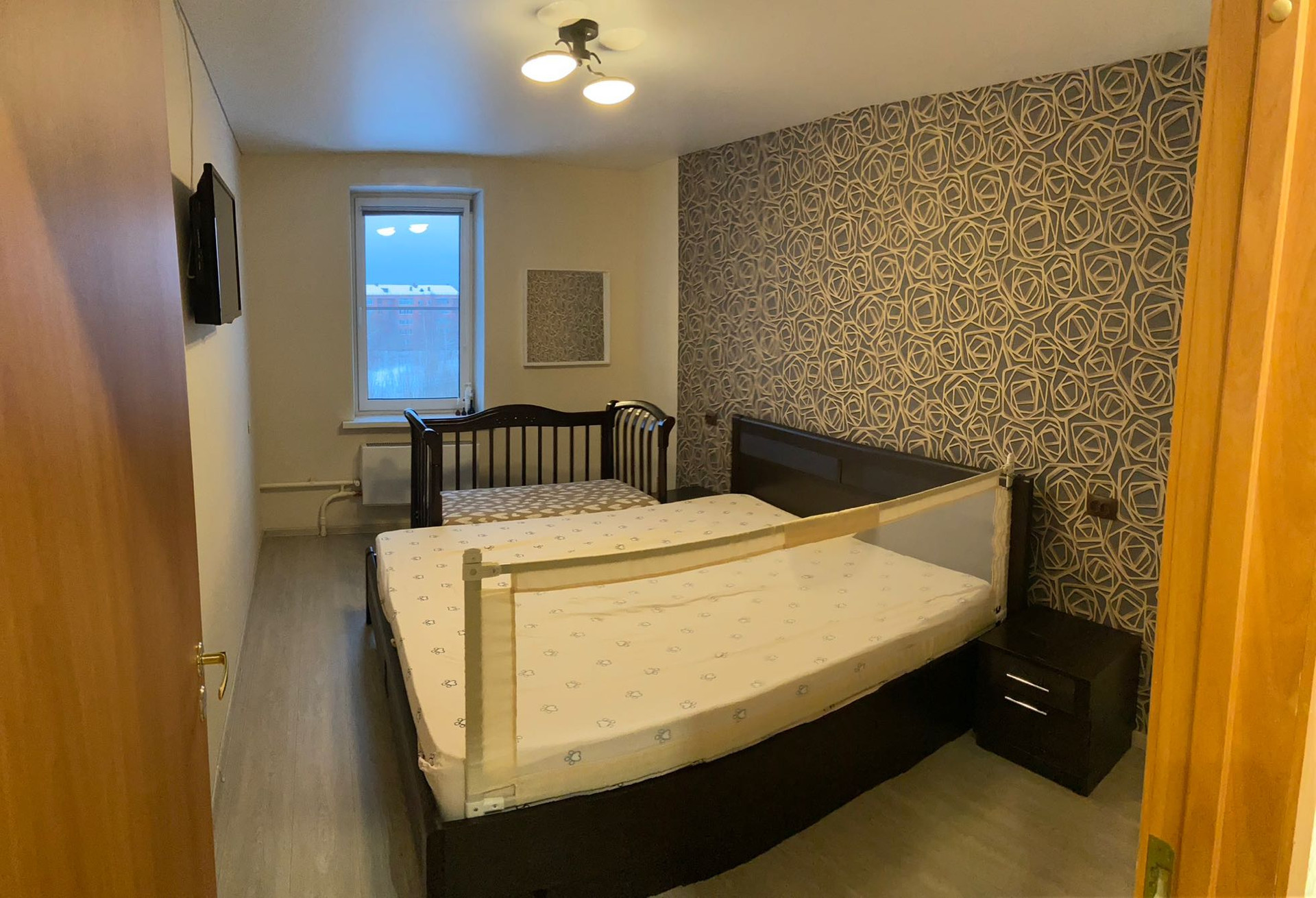 Перепланировка узаконена из 3к в 2к плюс. В крайней  комнате полная звукоизоляция. Такой квартиры точно нет ни у кого, индивидуальная планировка.