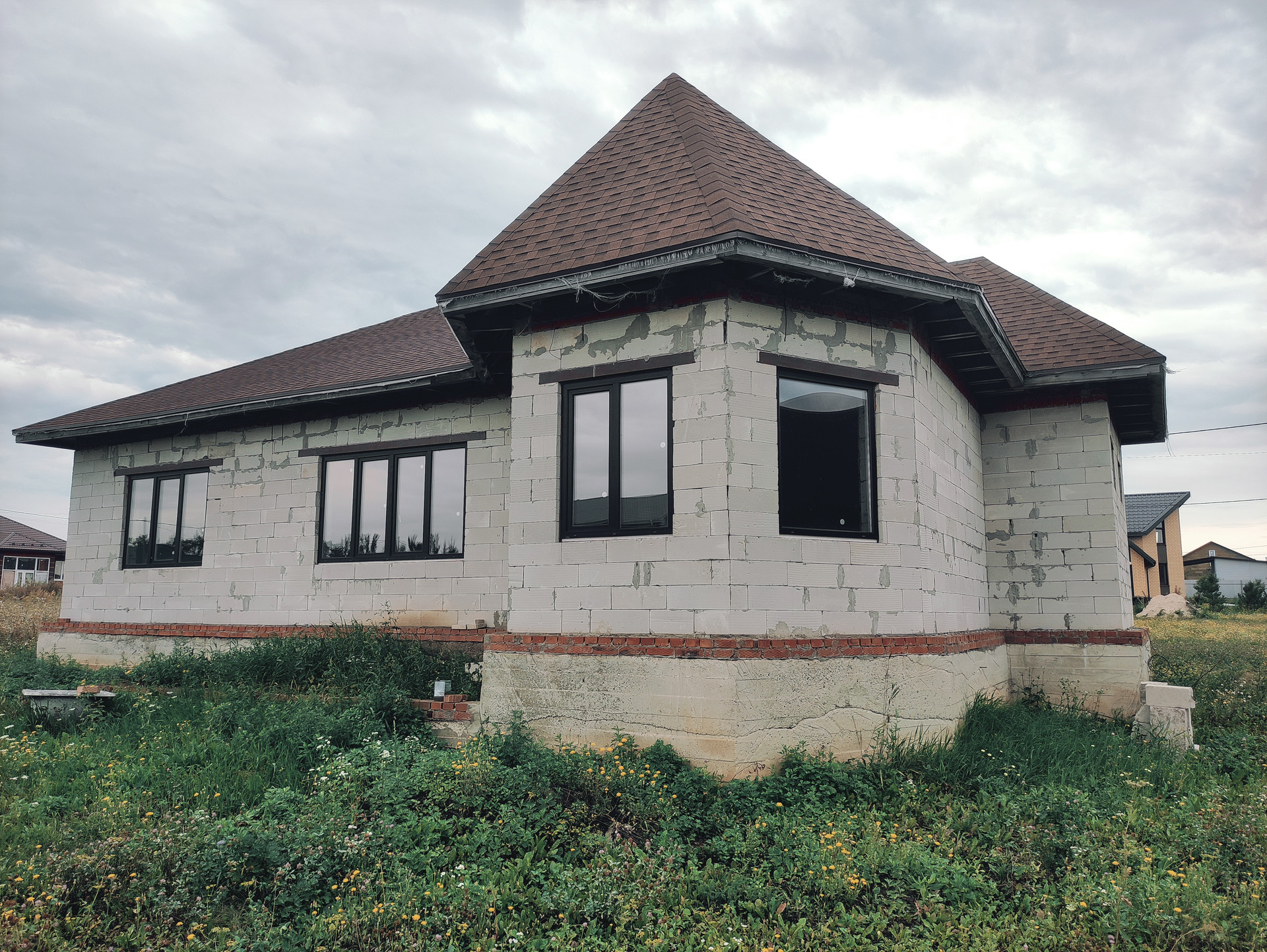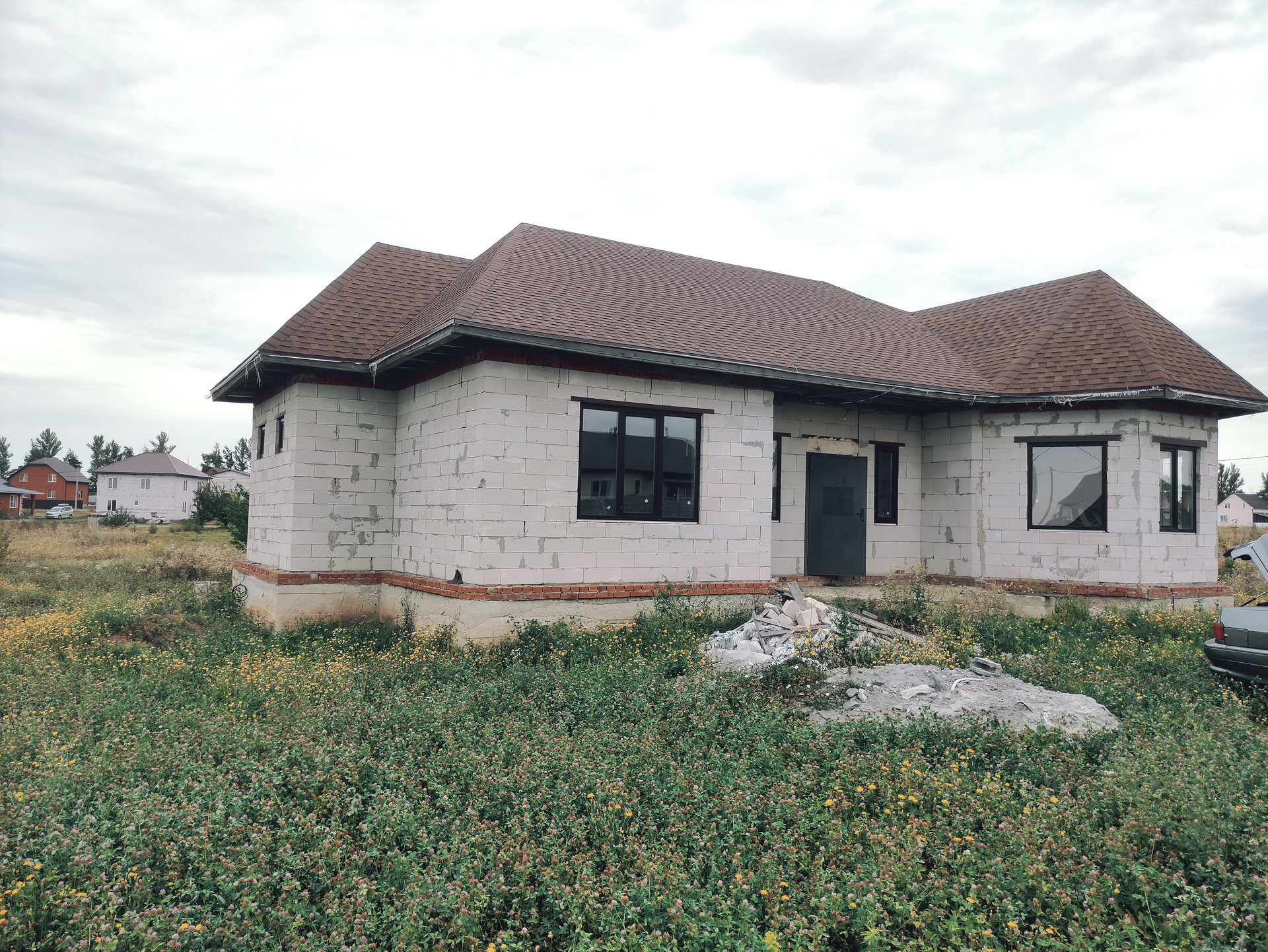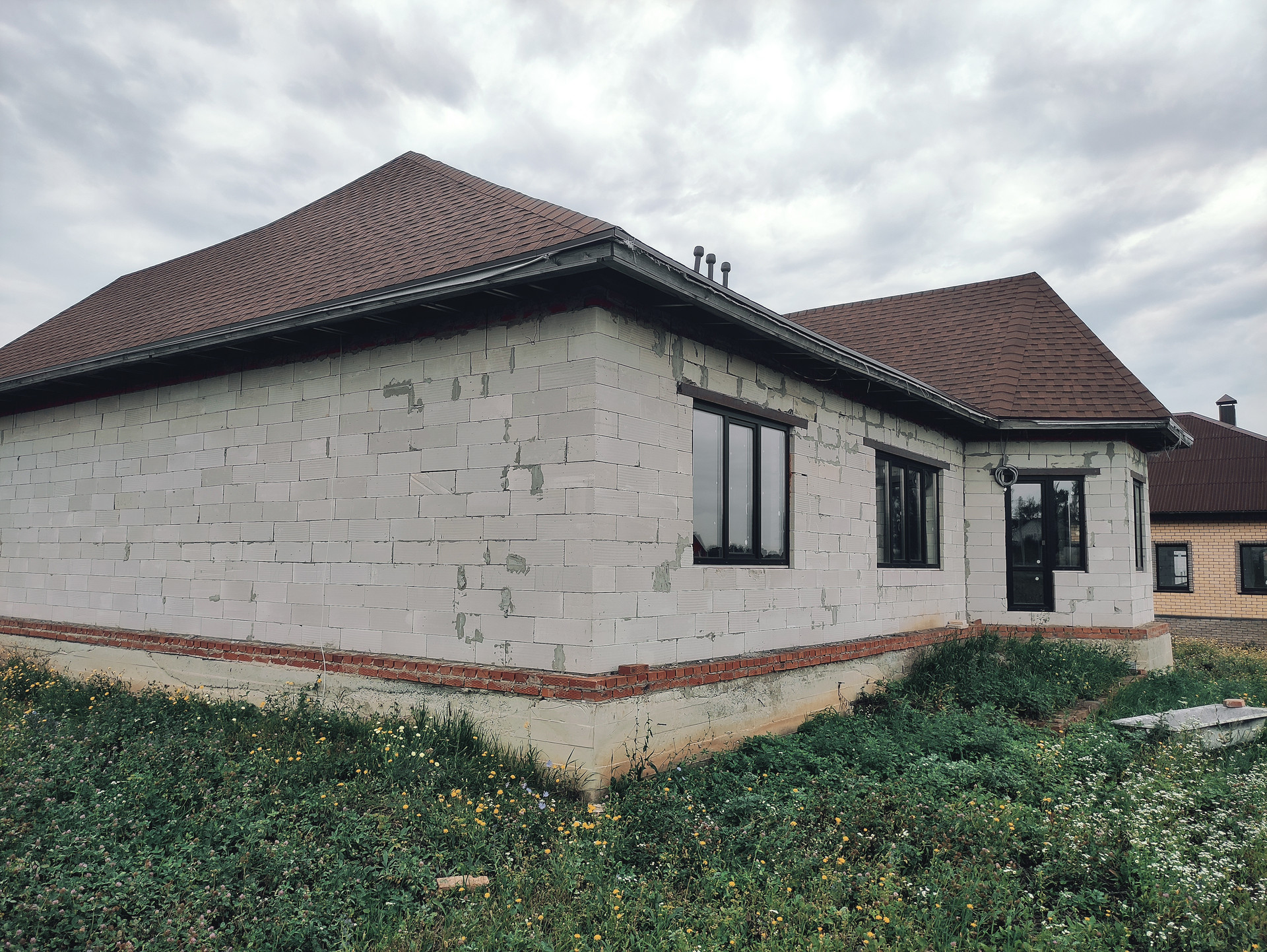Внешние стены дома газосиликат, внутренние стены керамзитобетон. Крыша - мягкая кровля.