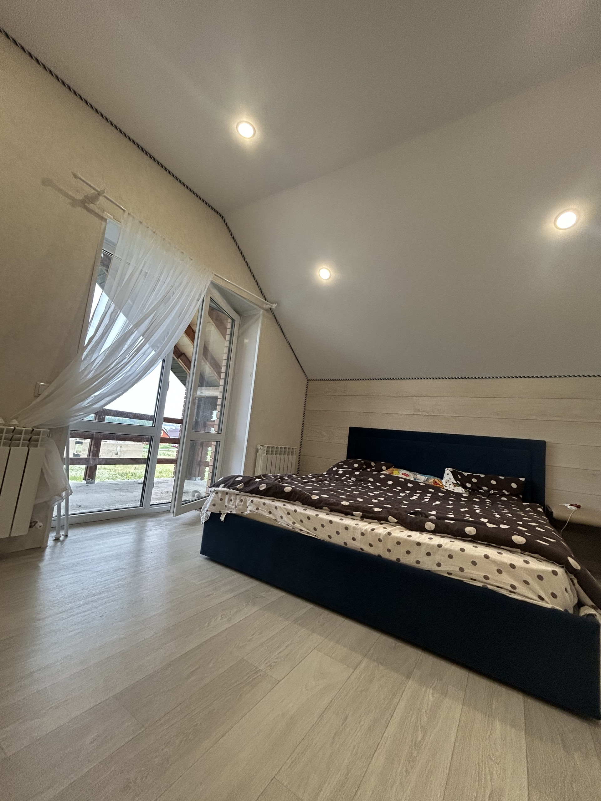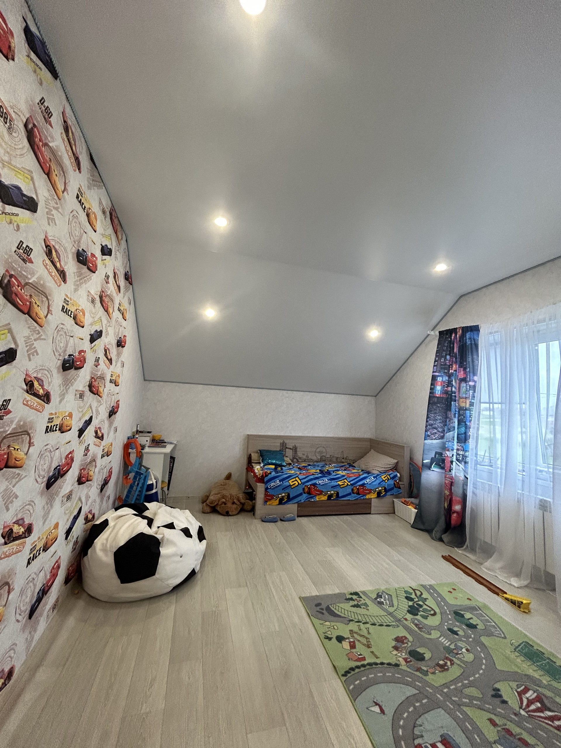По планировке на первом этаже - кухня-гостиная, спальня, совместный санузел, котельная, коридор. На втором этаже - 3 спальни, совместный санузел.