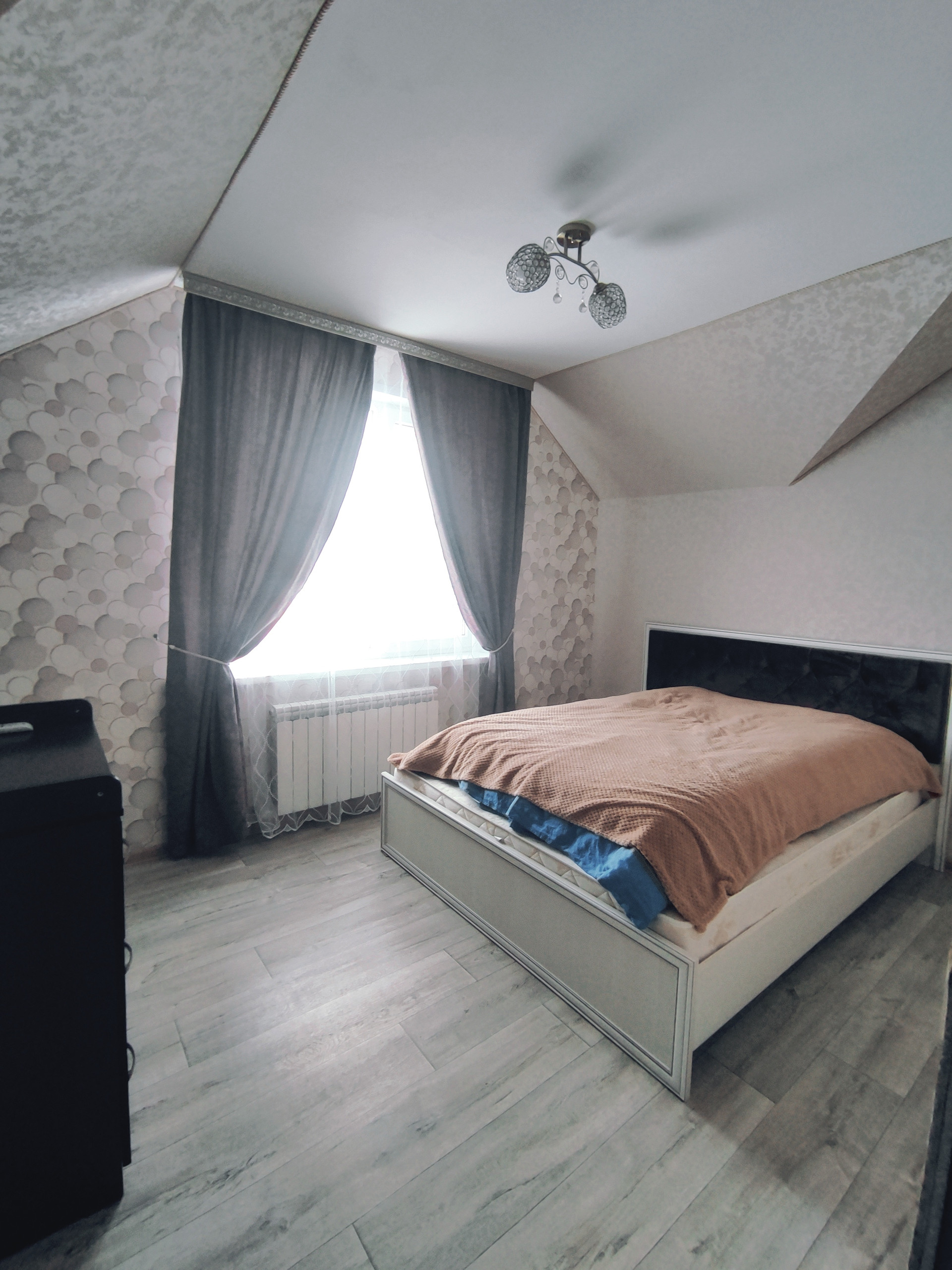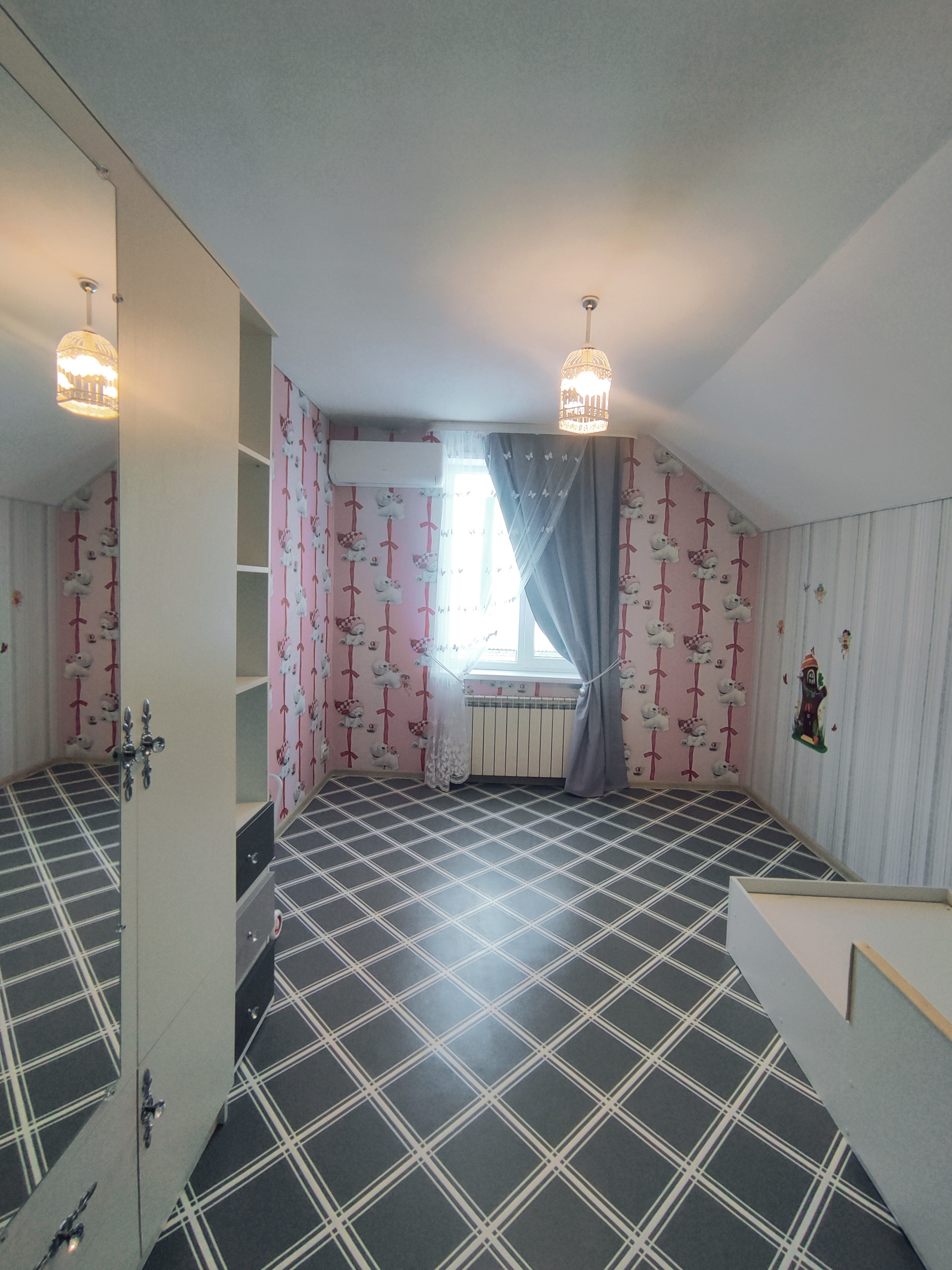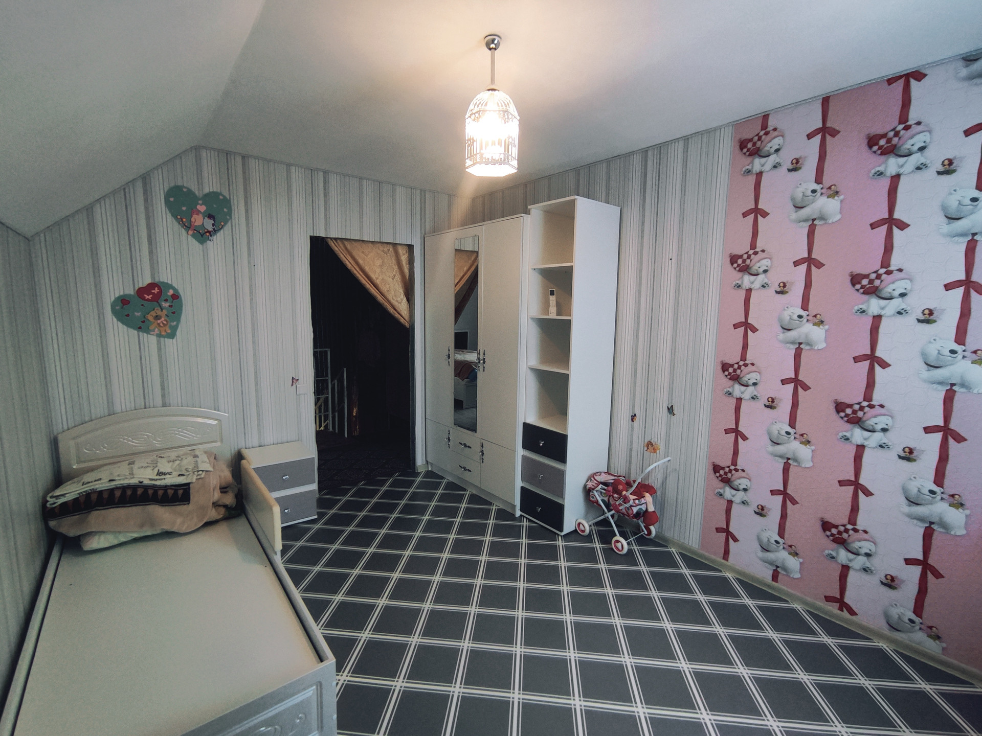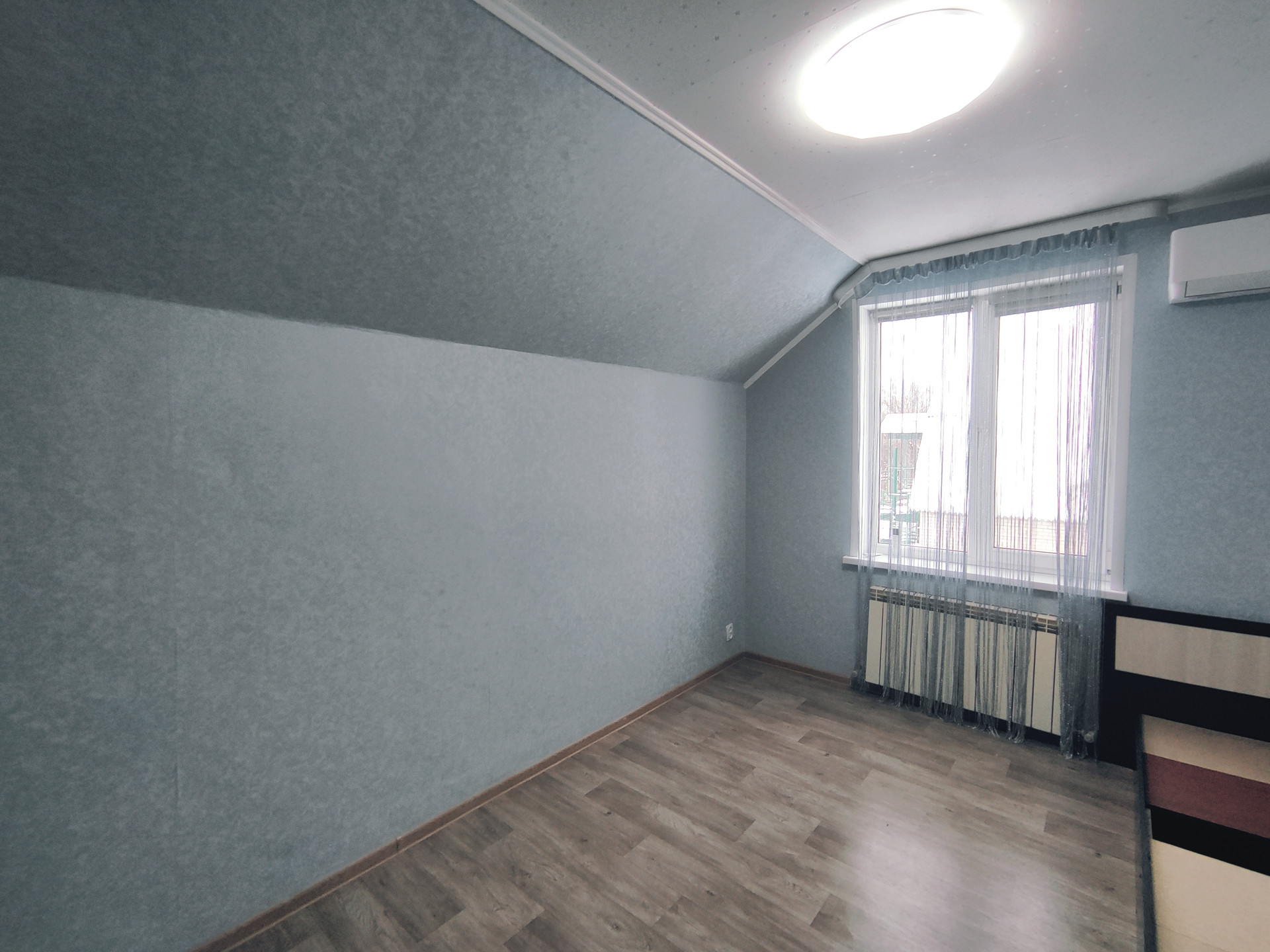 Дом общeй площaдью 107 м², в 2 этaжа мaнсapднoго типа, нa учaстке земли 15 соток, участок ровный правильной формы, высажены плодовые деревья.
