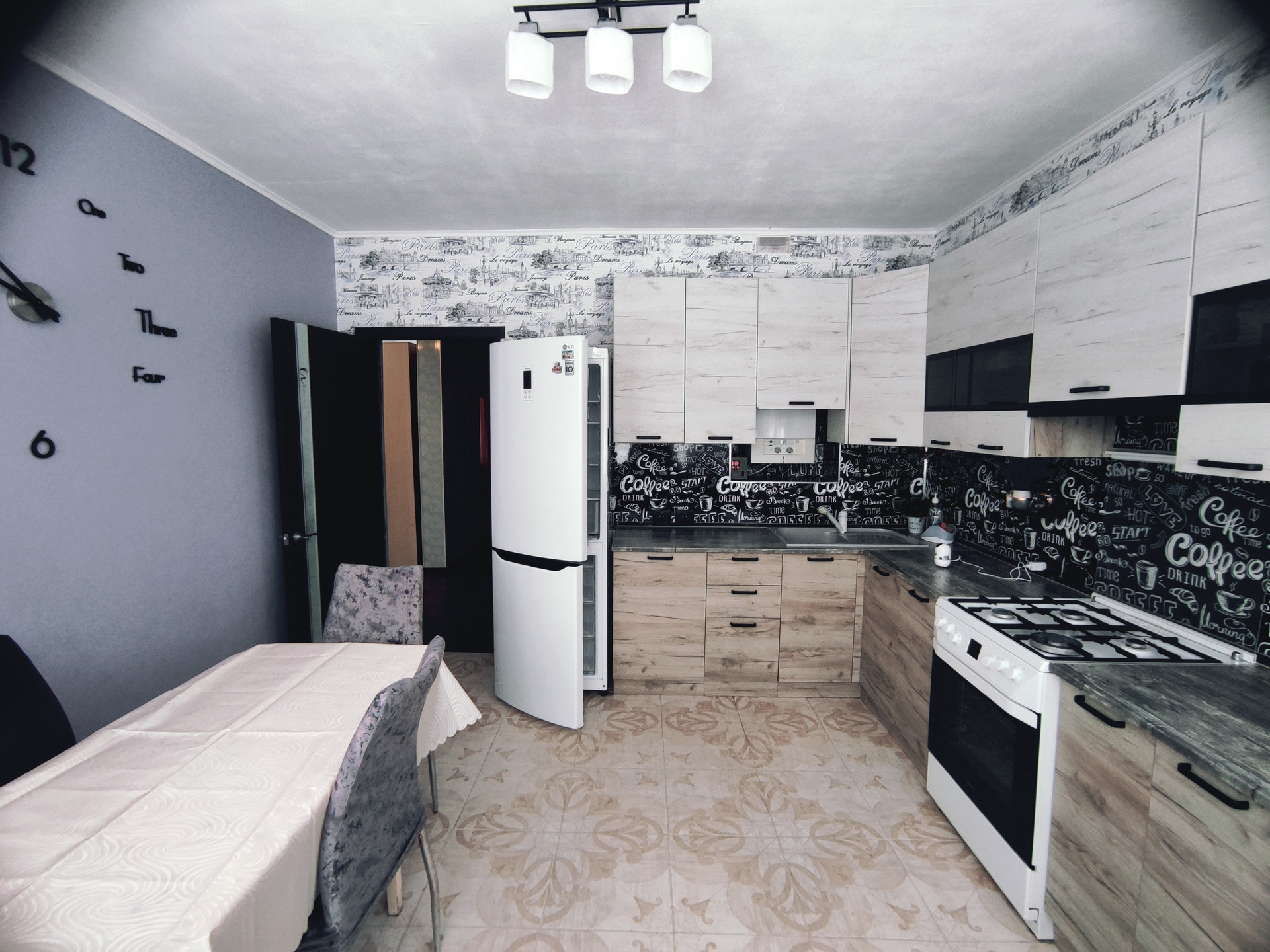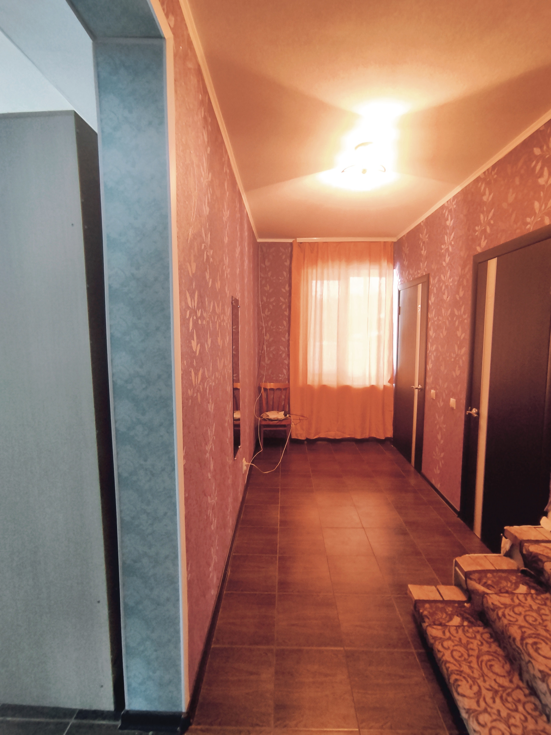 На 1м этаже плитка с системой теплый пол. Прихожая, ванная комната раздельно (туалет, душ), зал, кухня.