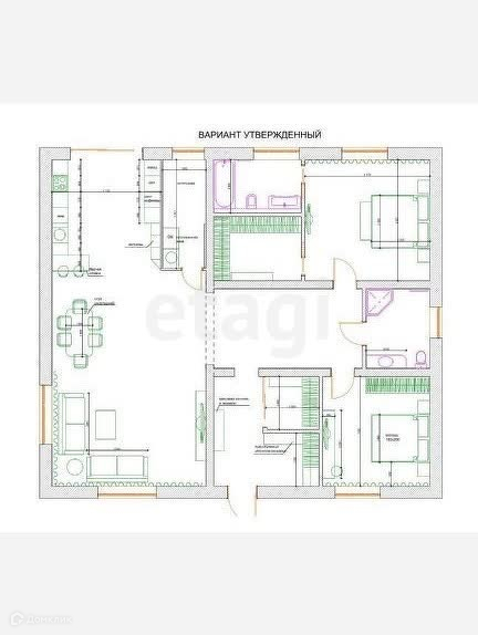 Планировка: 3 спальные комнаты, 1 совмещенный санузел, котельная, большая кухня-гостиная.
