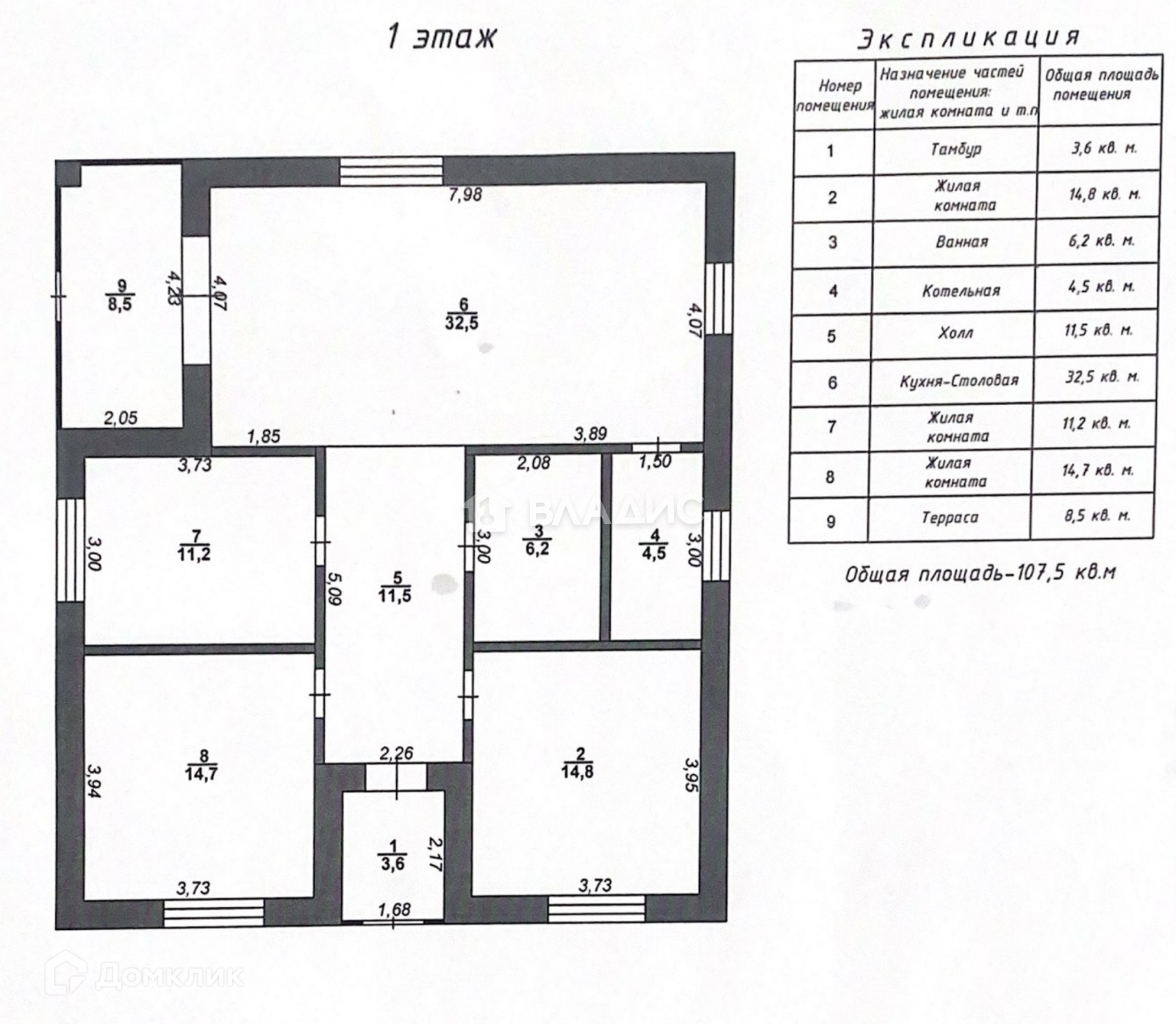 Общая площадь 107.5 м2