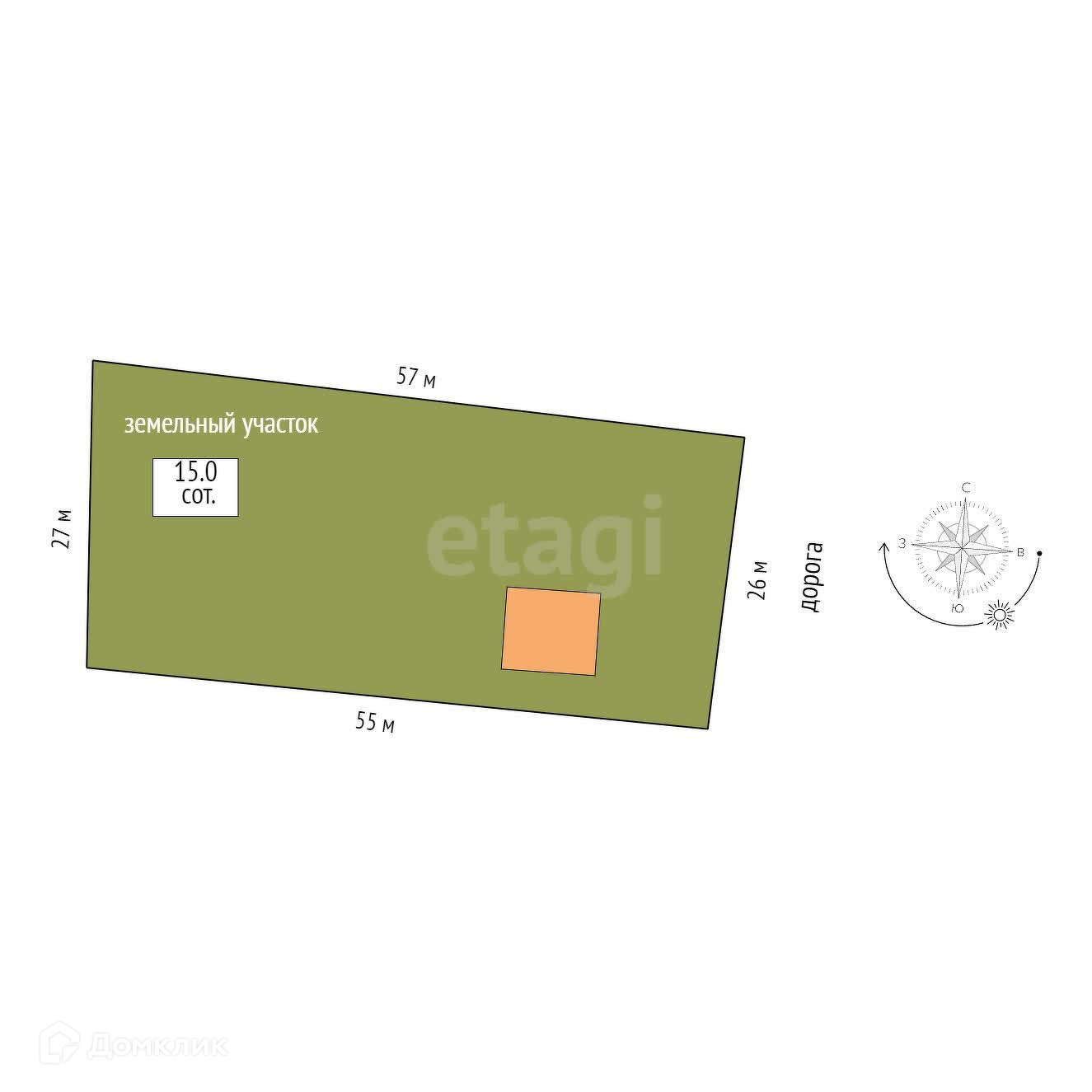 Площадь участка 15 сот.