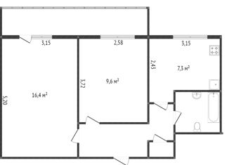 Общая площадь: 58.3 м2