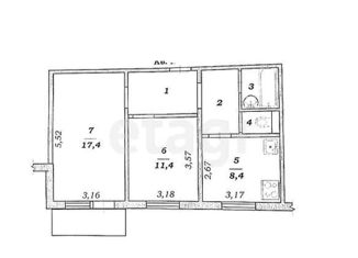 Общая площадь: 52.6 м2