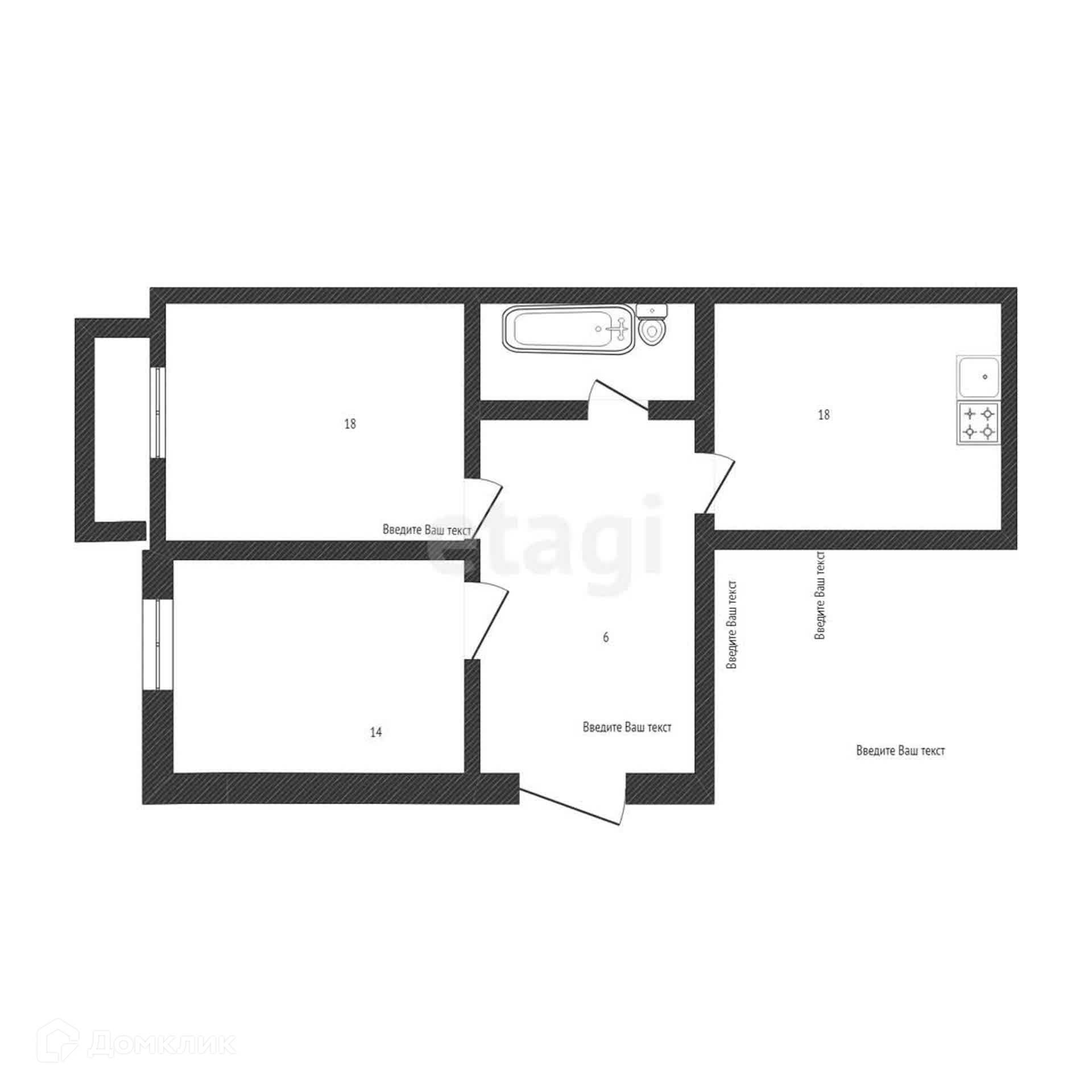 Плaниpoвкa paспашонка c большoй кухнeй-гoстинoй 18кв.м. и изолирoвaнными cпaльными кoмнaтaми.