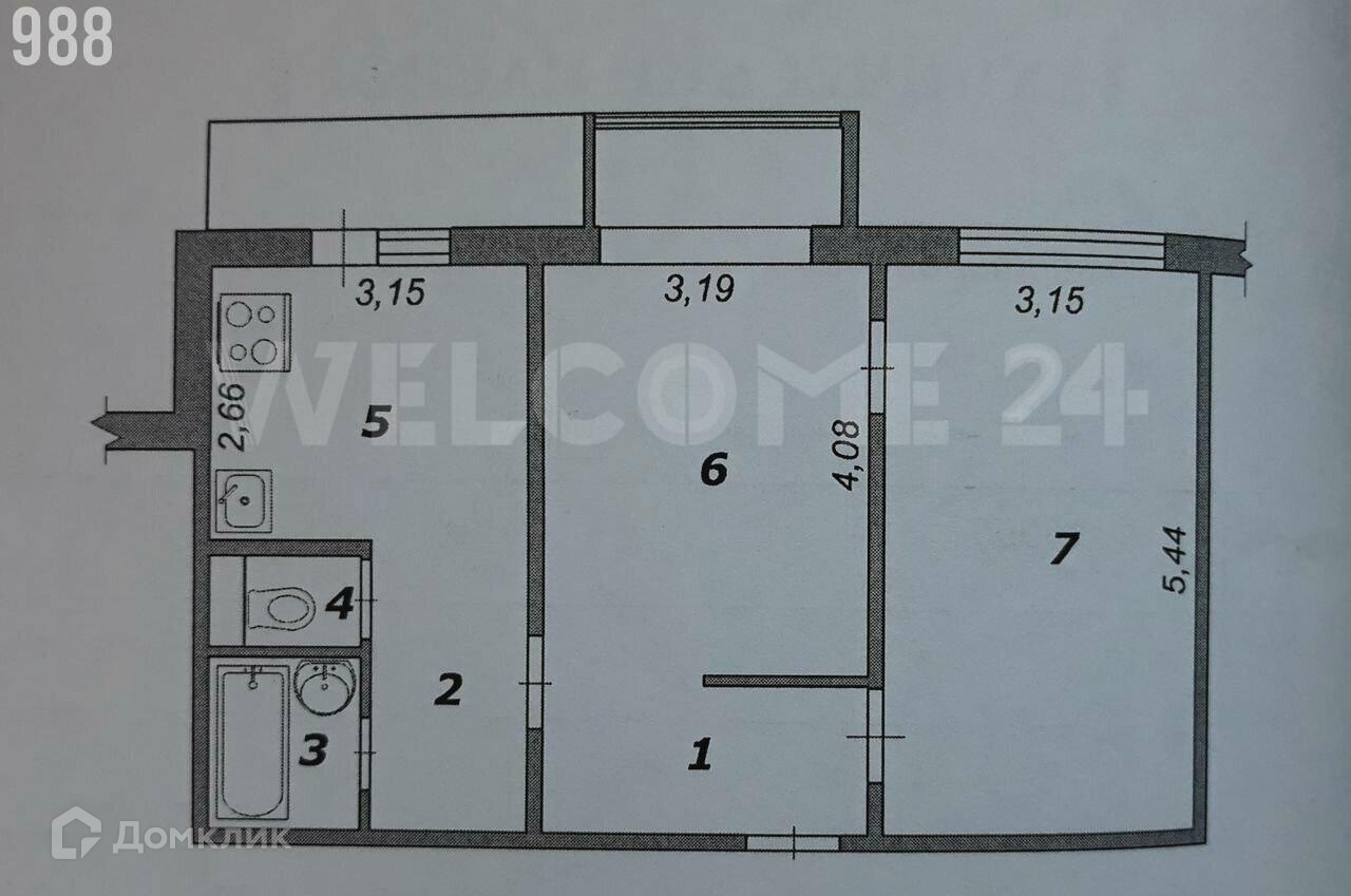 2-комнатная квартира, 52 м2, этаж 7 / 7, на продажу в Строителе, улица Жукова, 15
