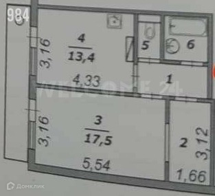 Жилая площадь 17 м2