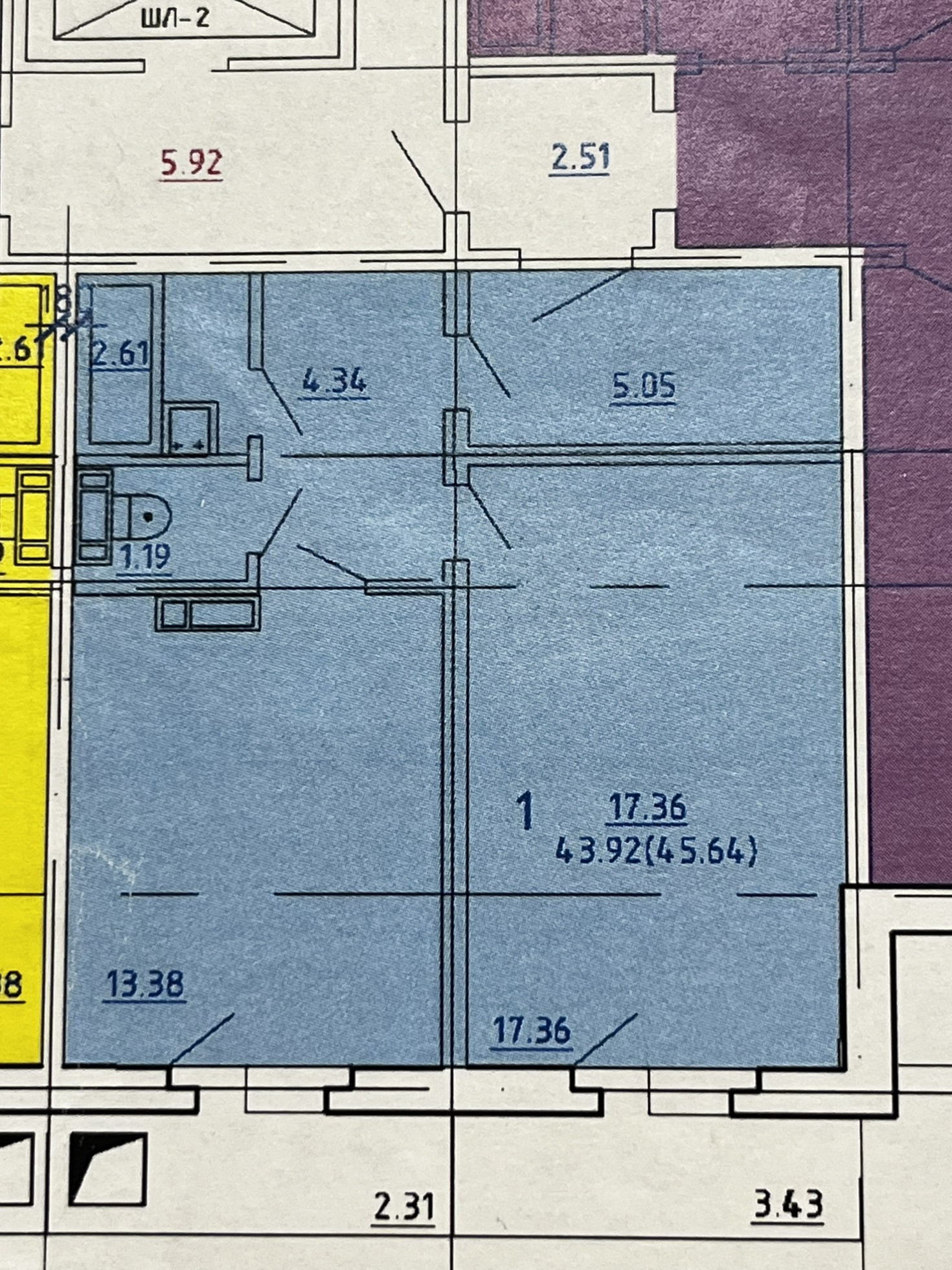 Общая площадь 43.9 м2