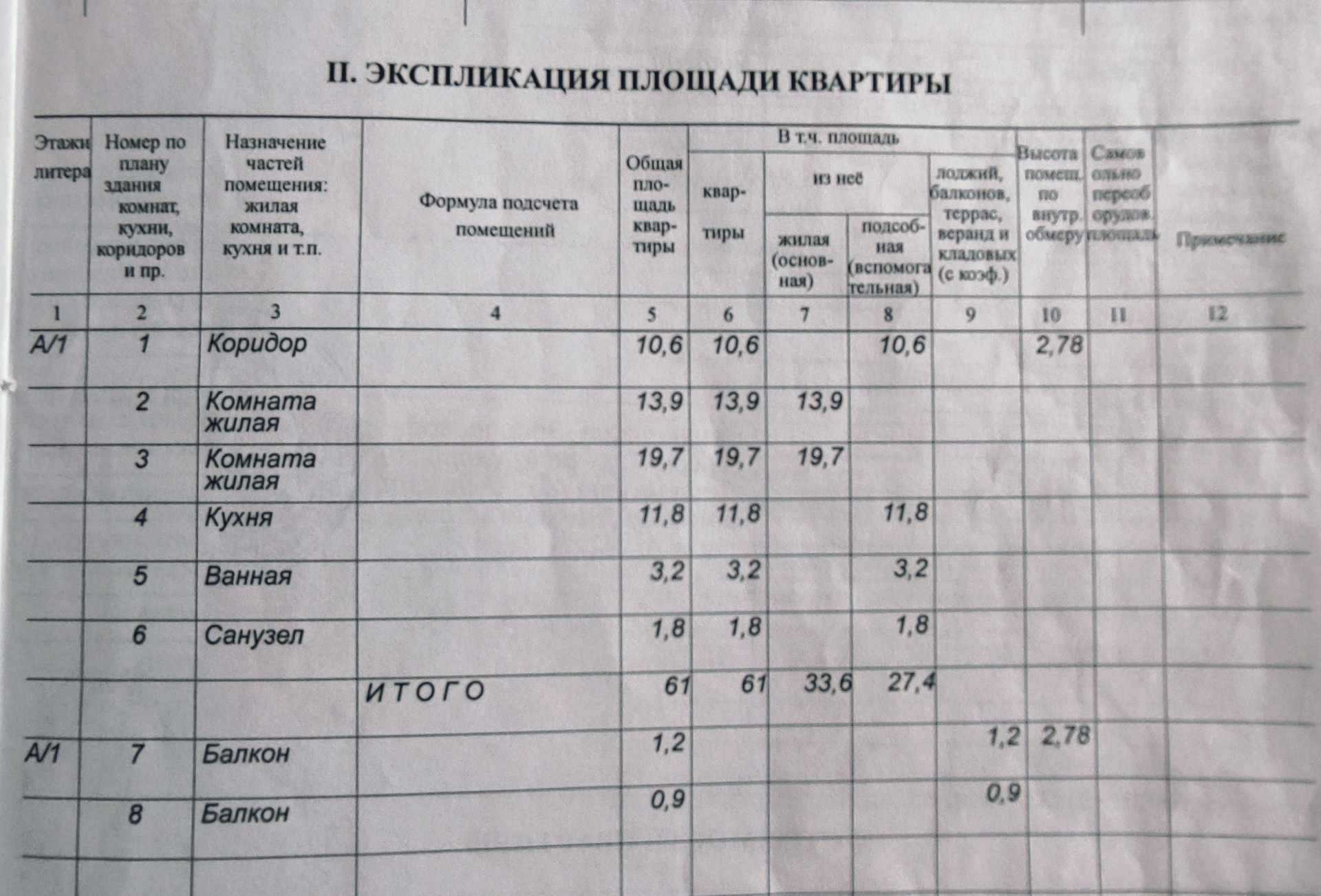 Общая площадь 61 м2