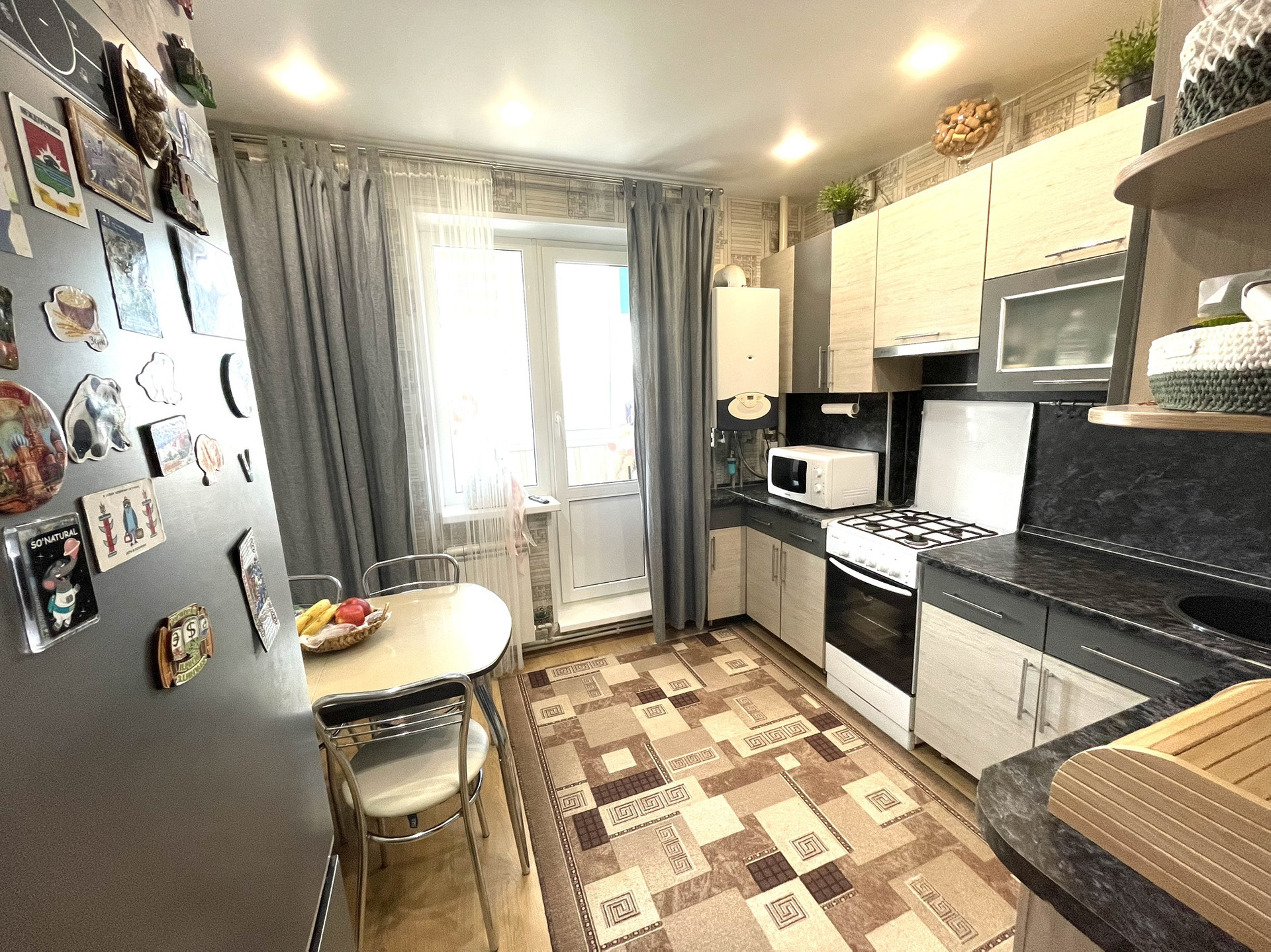 Комфортабельная квартира в благоустроенном районе, с отличной инфраструктурой. Индивидуальное отопление. Раздельный санузел отделан кафелем. Утепленный большой балкон (заменен стеклопакет). В квартире остается встроенная кухня, прихожая, большой шкаф в гостиной.