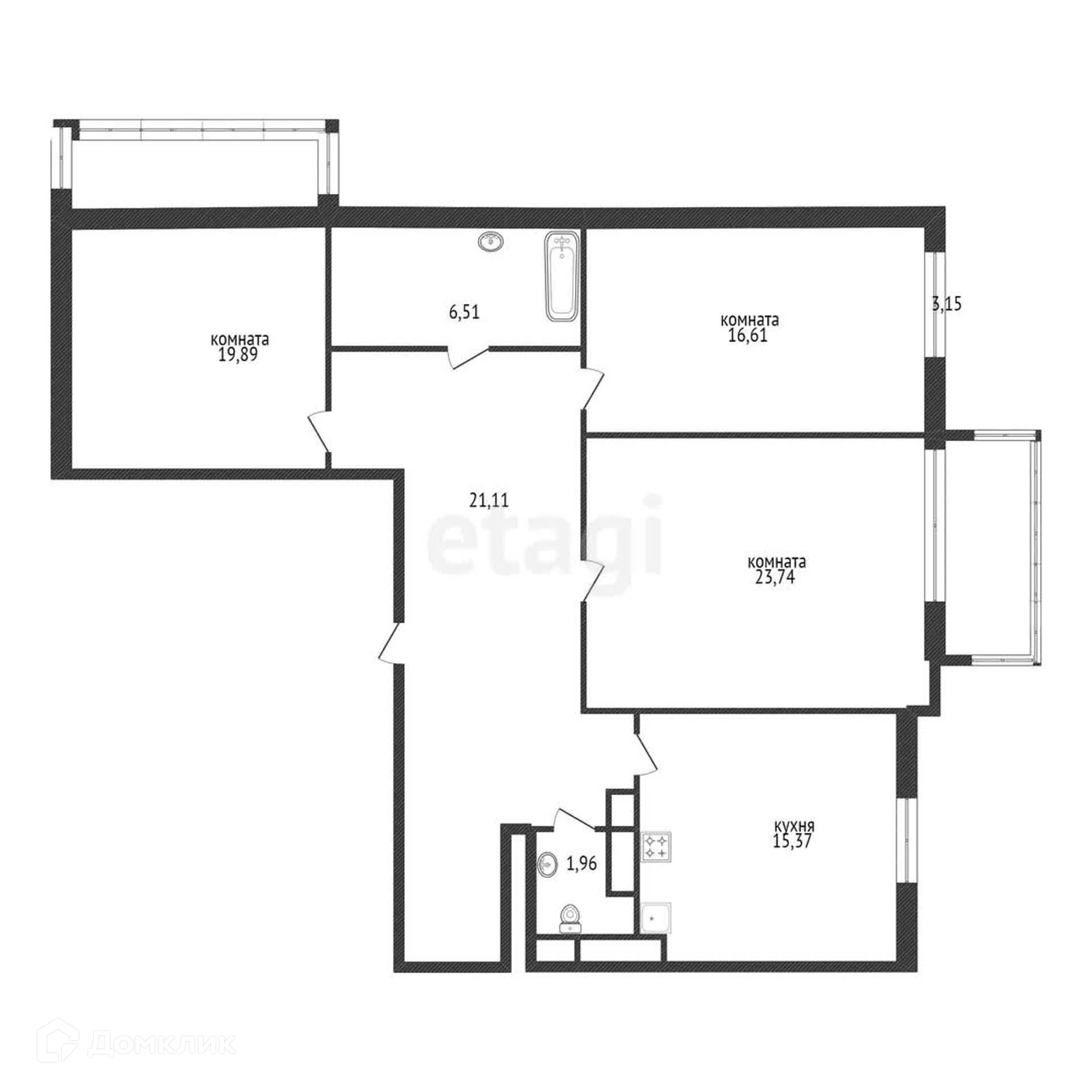 Балкон, лоджия 1 балкон