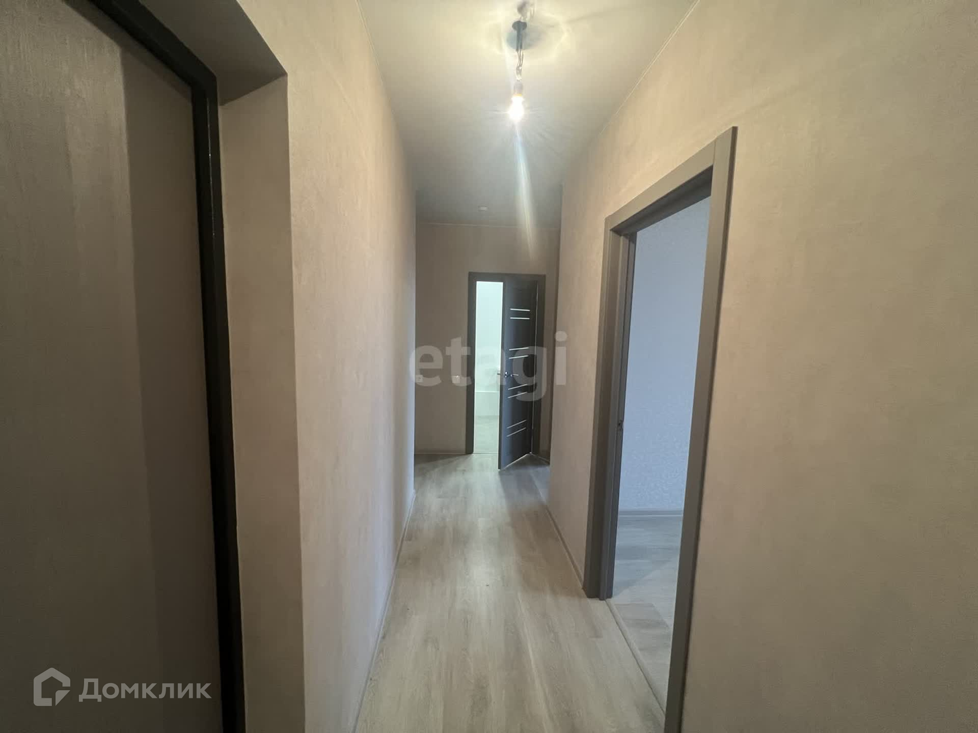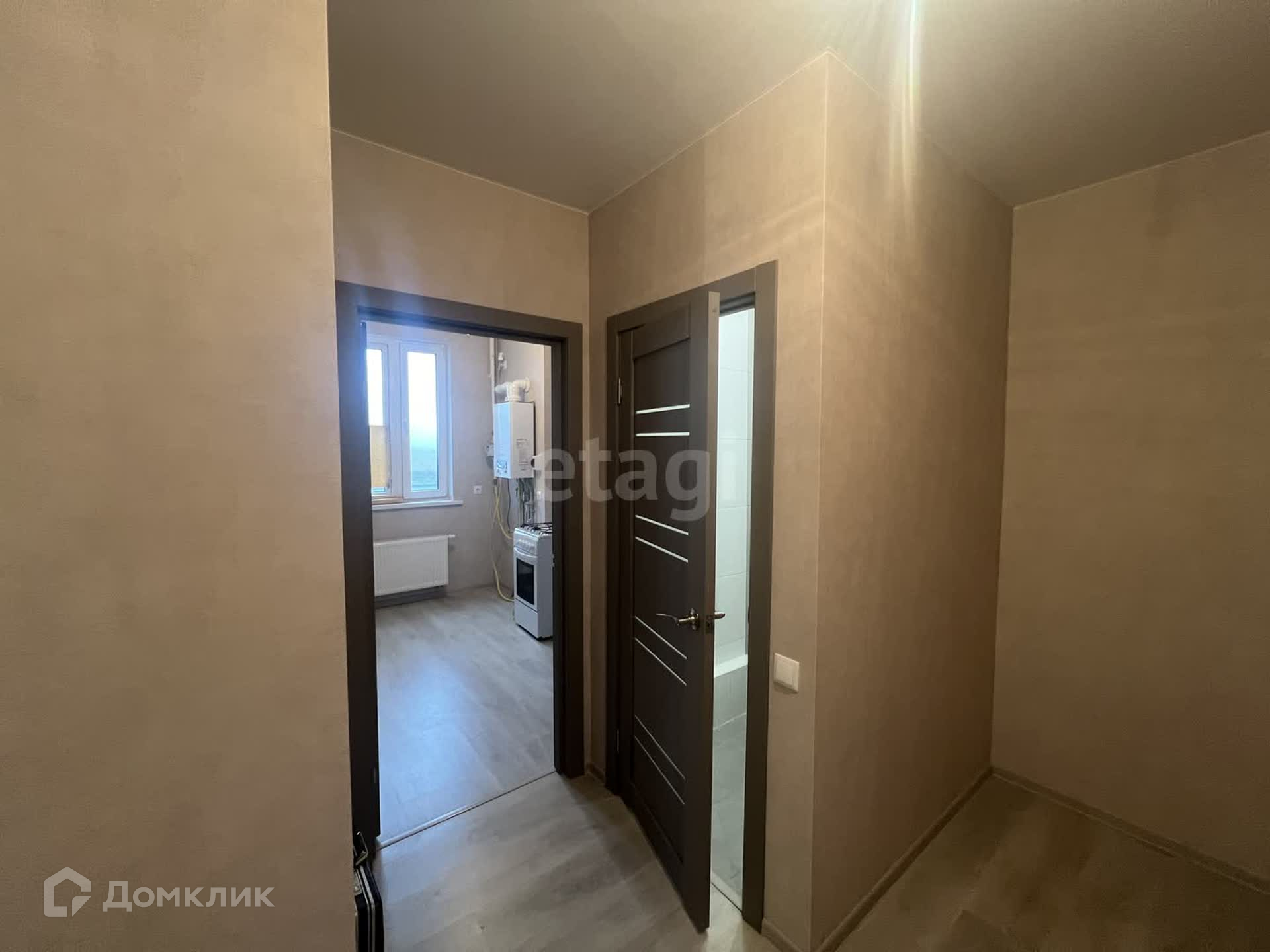 Внутри просторные ванная и туалетная комнаты. Санузлы полностью выложены кафелем, а пол покрыт высококачественным ламинатом. В квартире установлены двери хорошего качества. Был выполнен универсальный и современный ремонт, включая обои пастельных тонов и натяжной потолок с точечными светильниками.