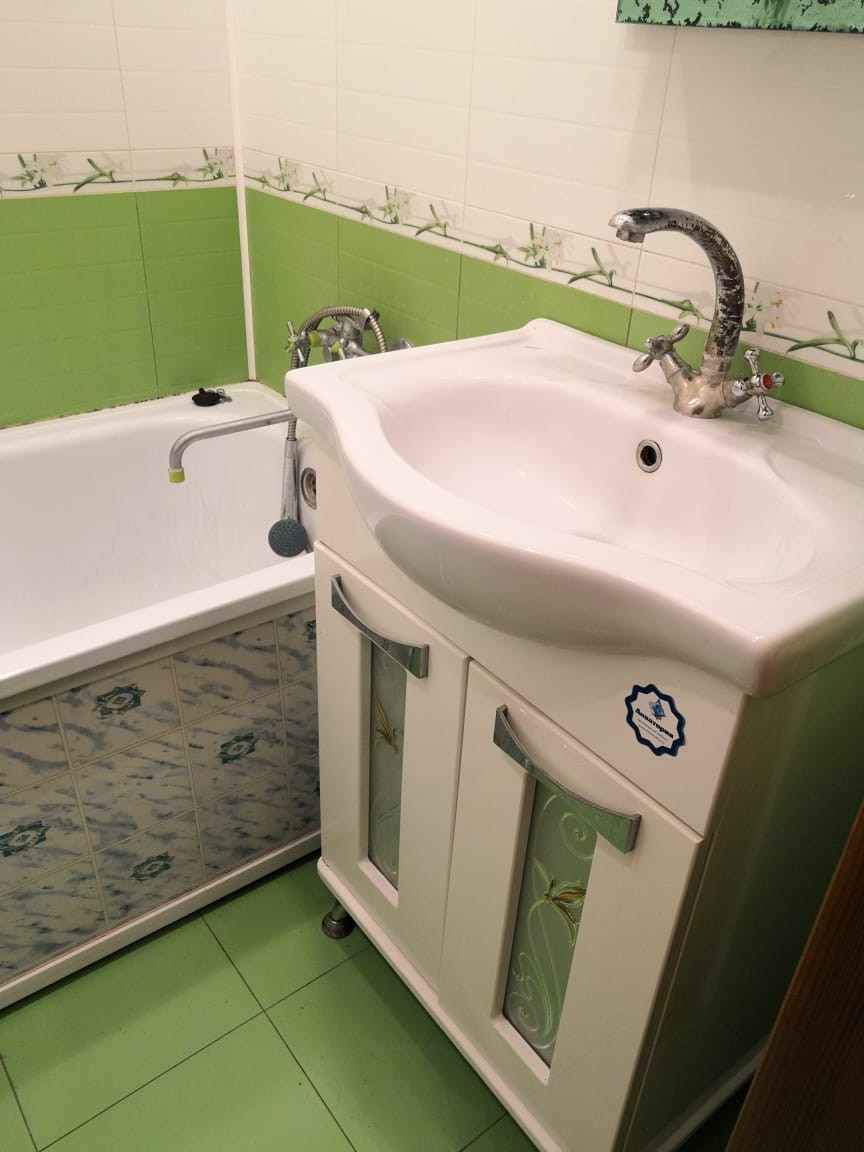 Установлена новая сантехника (ванная, тумба с раковиной, унитаз)