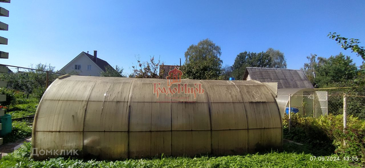 На участке стоит теплица. Имеются плодово-ягодные насаждения.