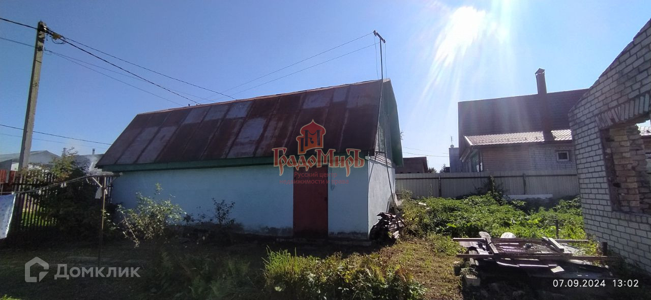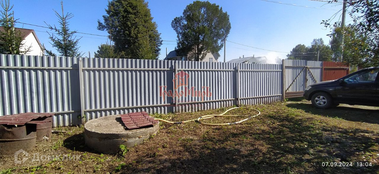 Участок огорожен с двух сторон забором из профнастила, и с ещё двух сторон сеткой рабица. Имеются распашные ворота для заезда автомобиля. На участке построен гараж в два этажа 46 м.кв. На втором этаже свободная комната.