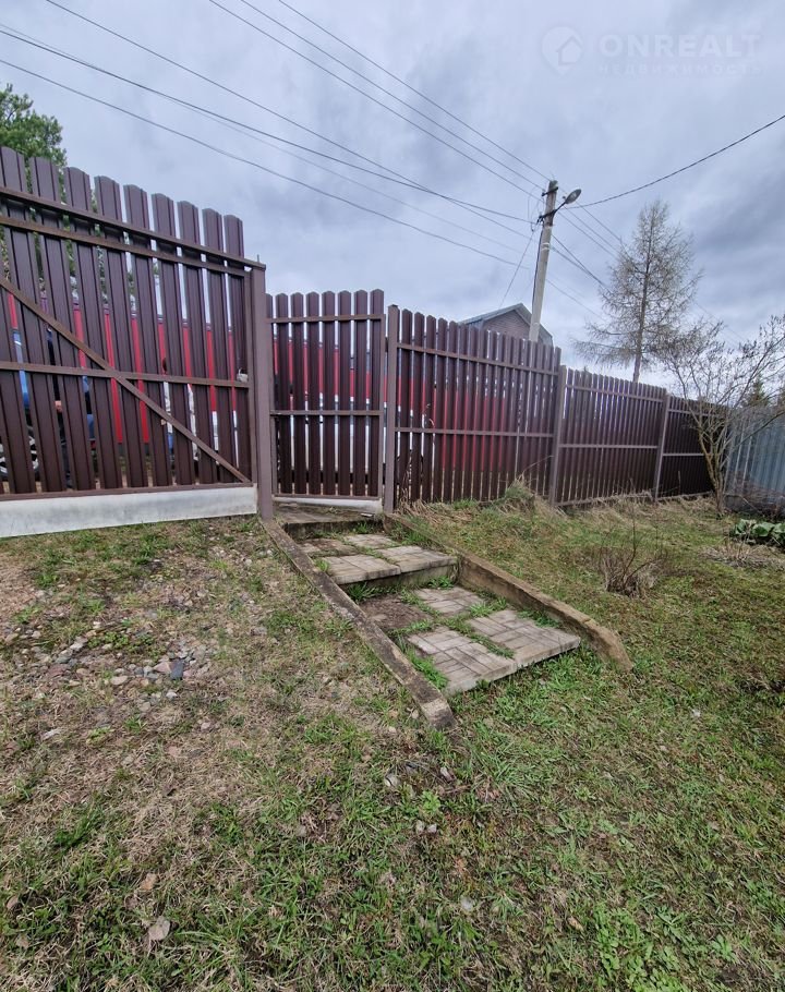 Участок рельефный, дом расположен в высокой его части. На участке есть сарай и банька. Туалет. С улицы огорожен металлическим штакетником (есть распашные ворота, калитка). Между соседями забор из секций металлического уголка и рабицы. Для машины отсыпана щебнем площадка. На участке растут плодовые, декоративные деревья и кустарники, лужайка с газоном и огородик.