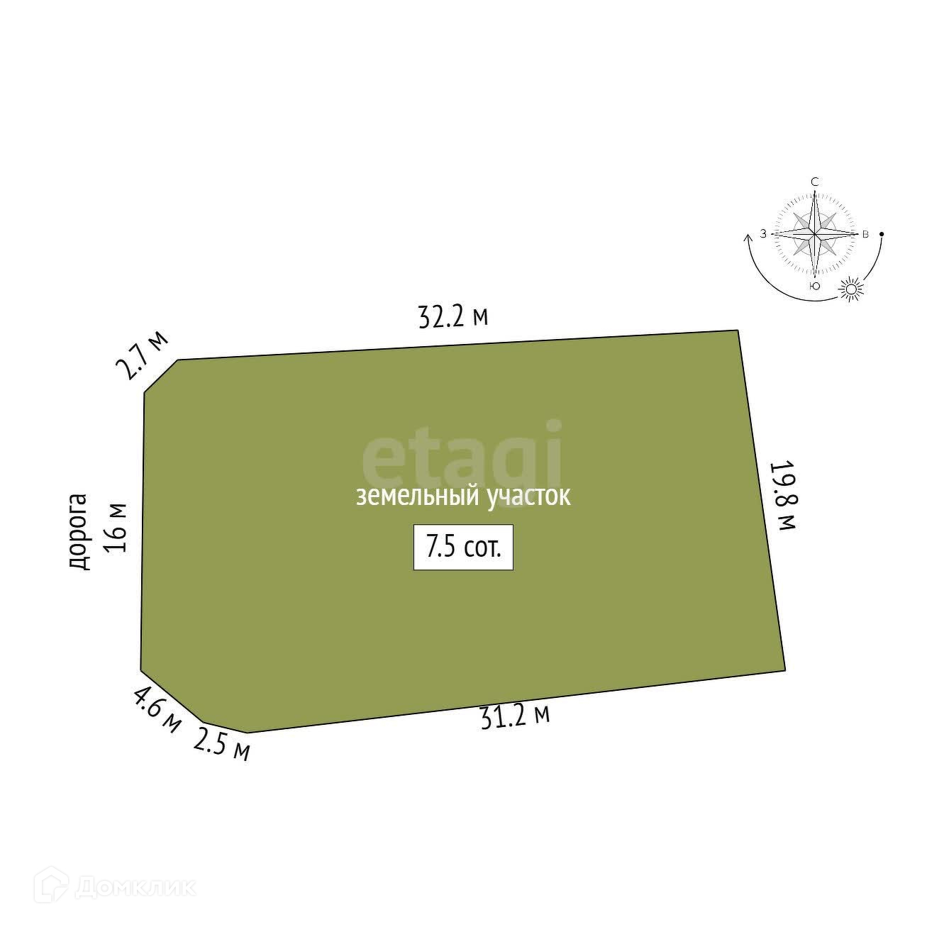 Площадь участка 7.5 сот.
