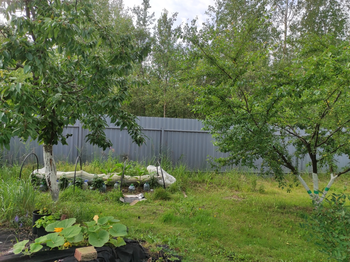 Плодово-ягодные растения : груша, слива, черешня,смородина,малина, крыжовник, клубника, виноград, цветы.