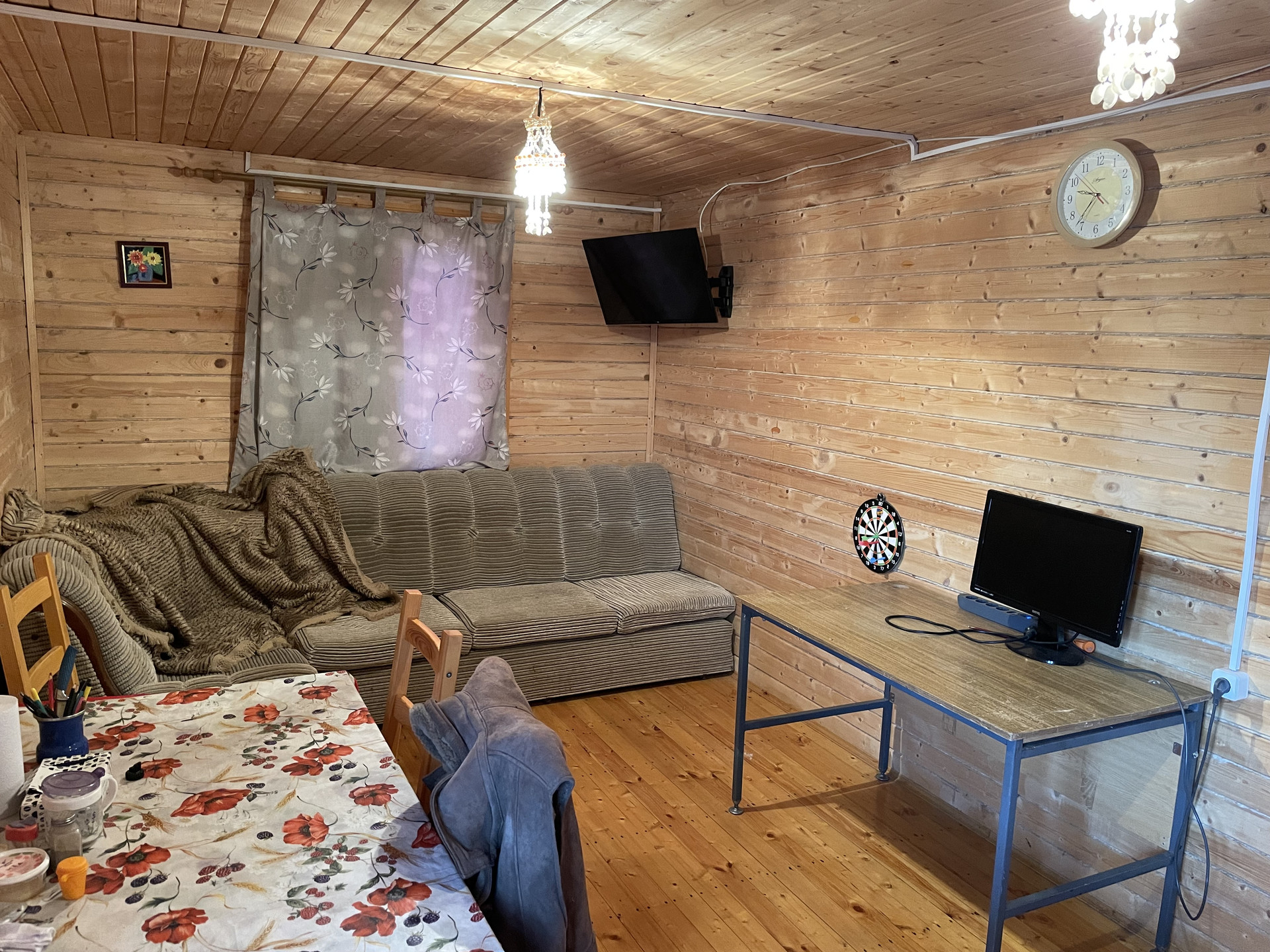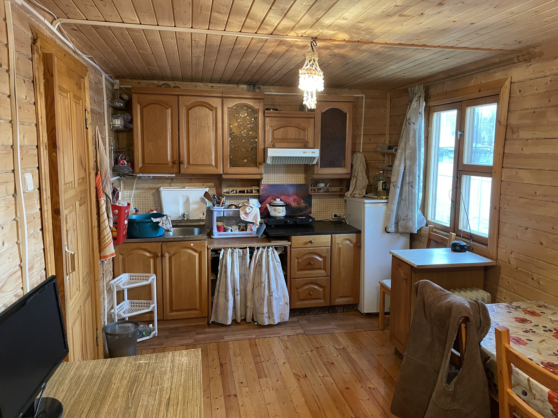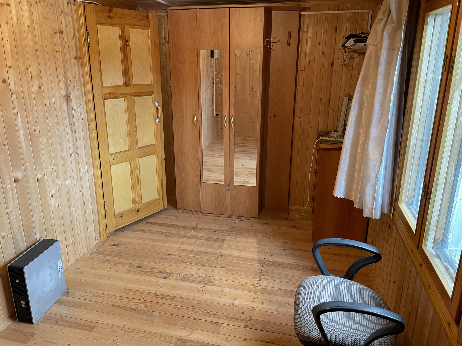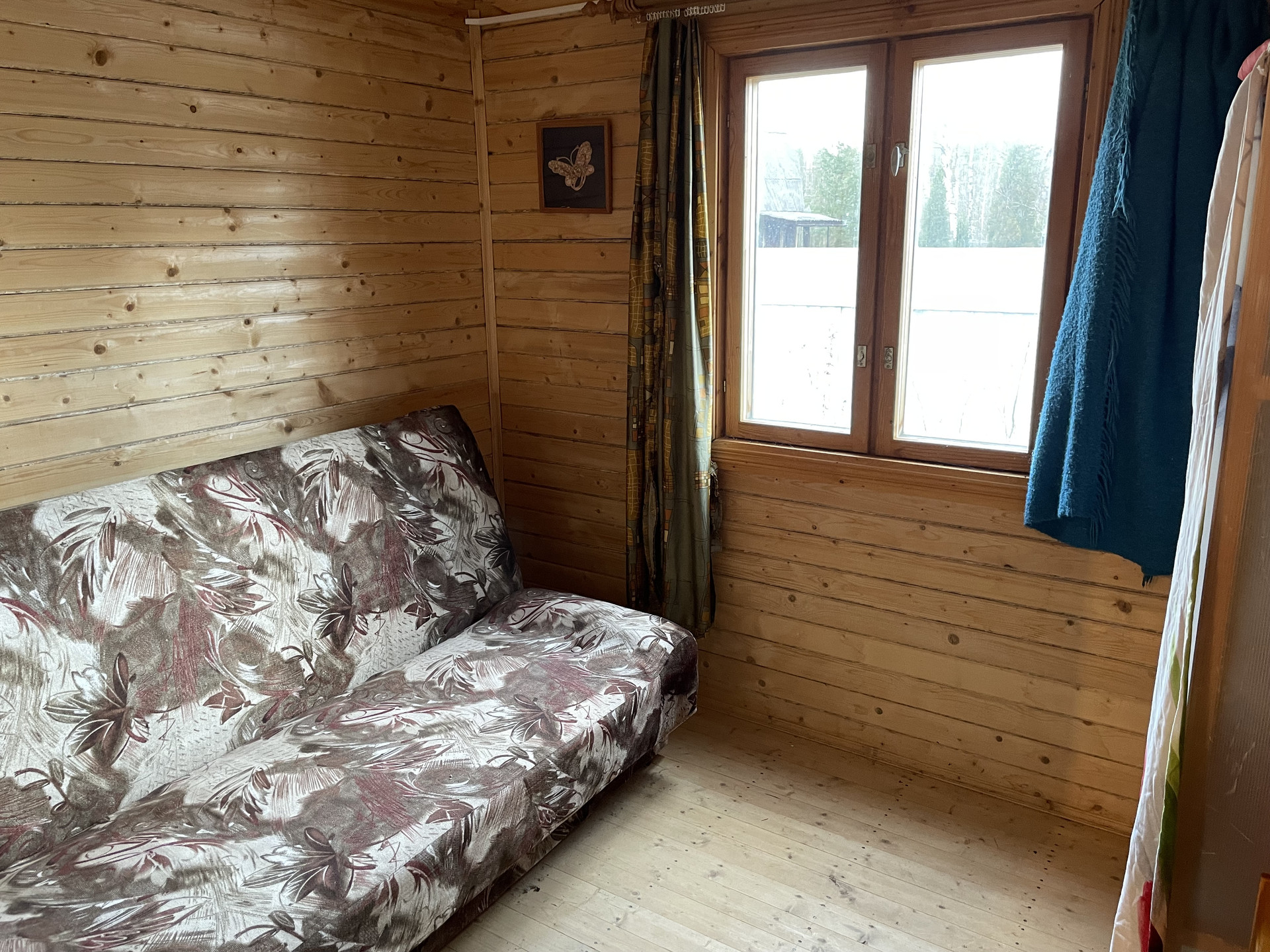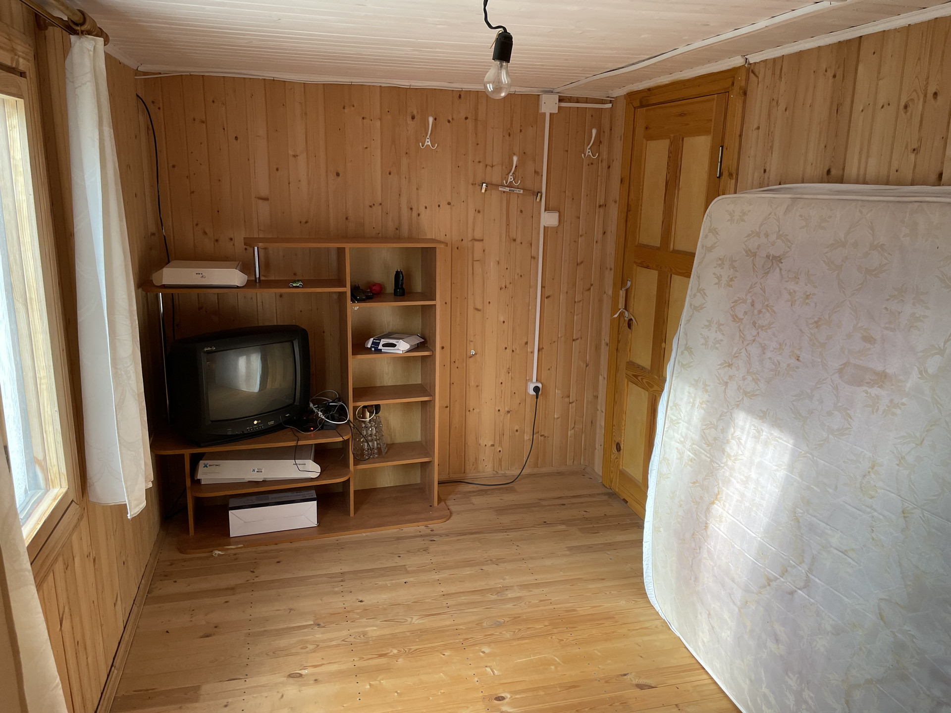 Дом 2-х этажный , первый этаж брус , второй этаж каркасный. На первом этаже прихожая, гостинная с кухней и спальня. На втором этаже две комнаты.