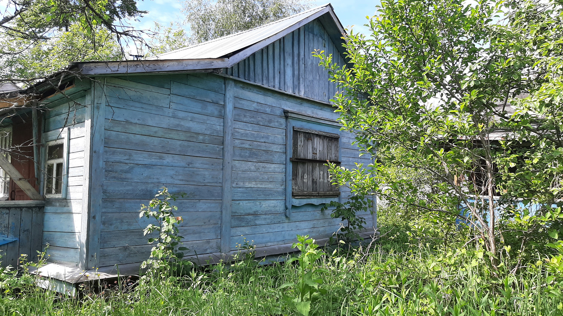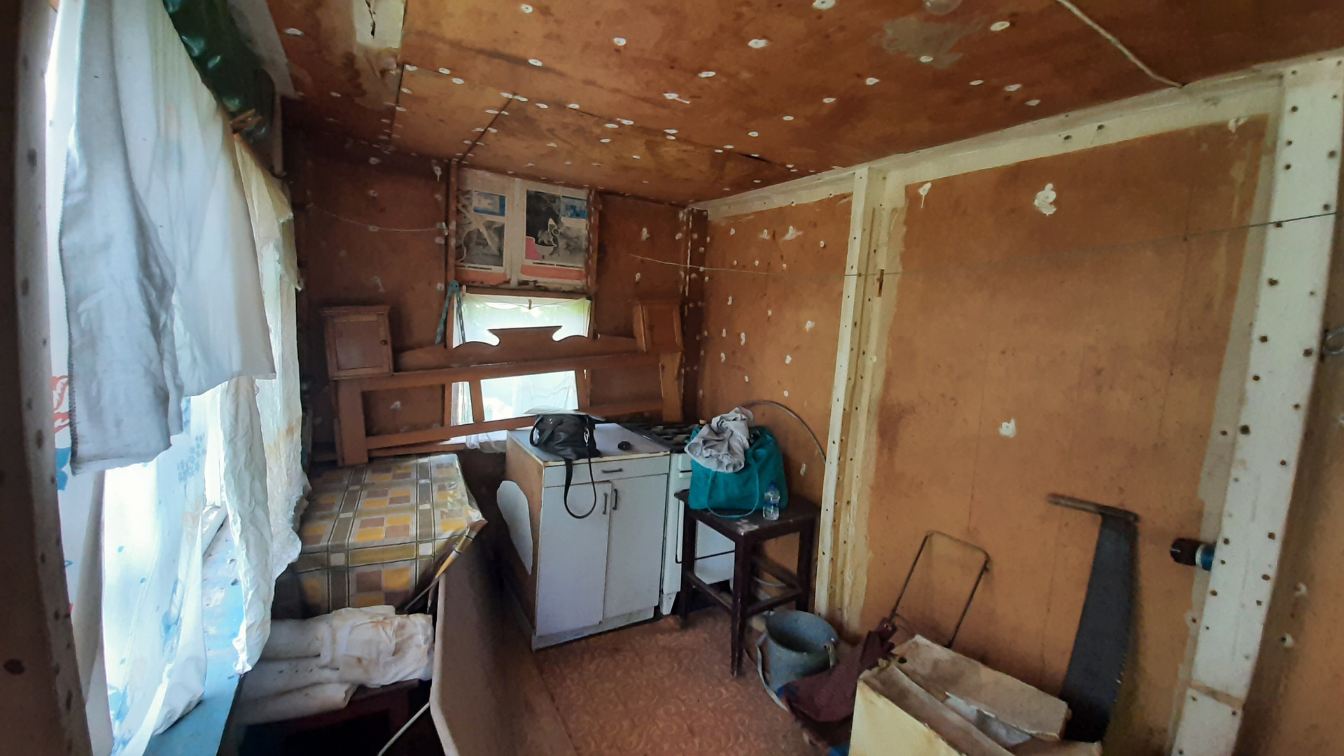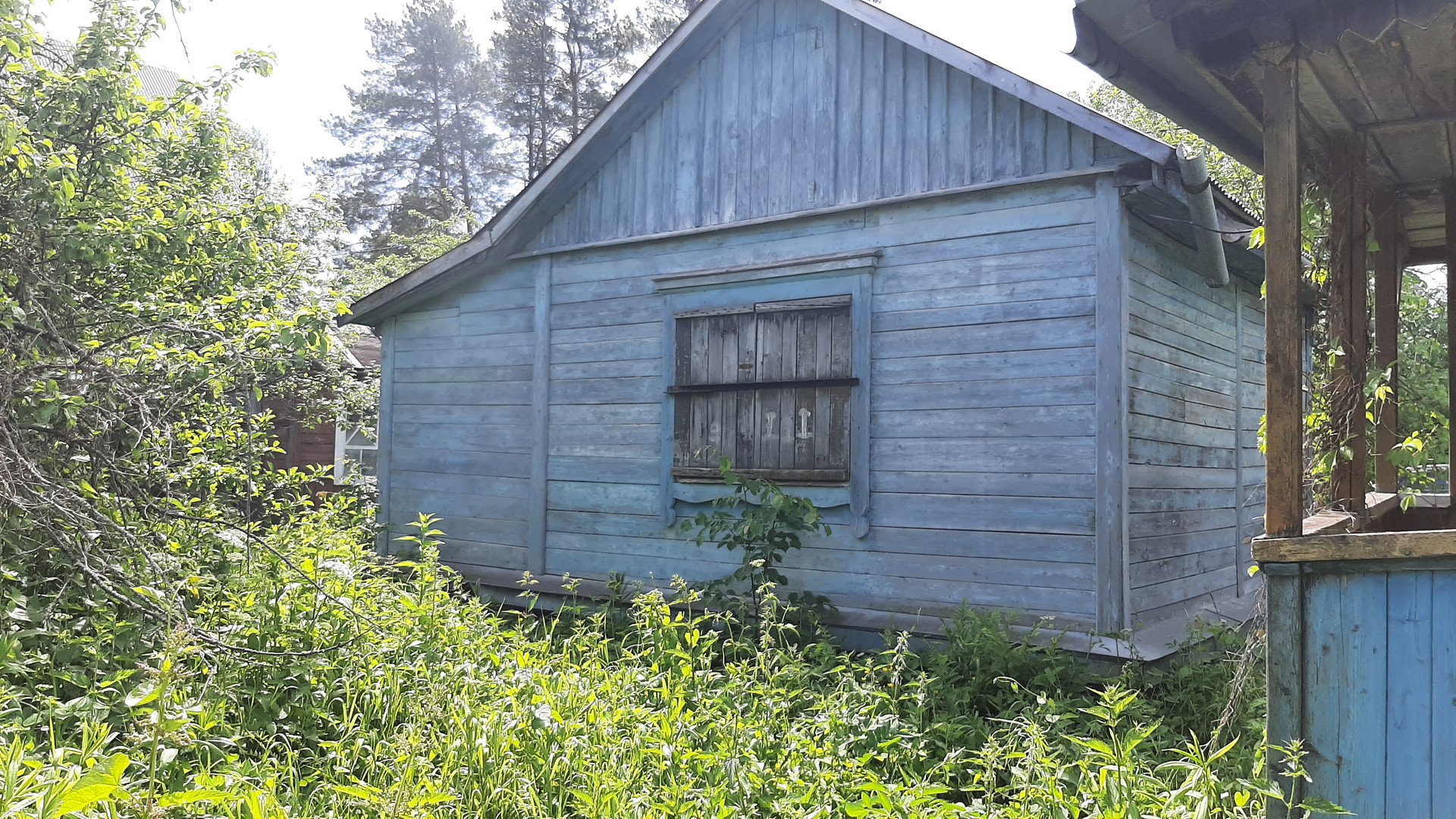 В садовом доме одна комната и терраса, крыша недавно перекрыта.