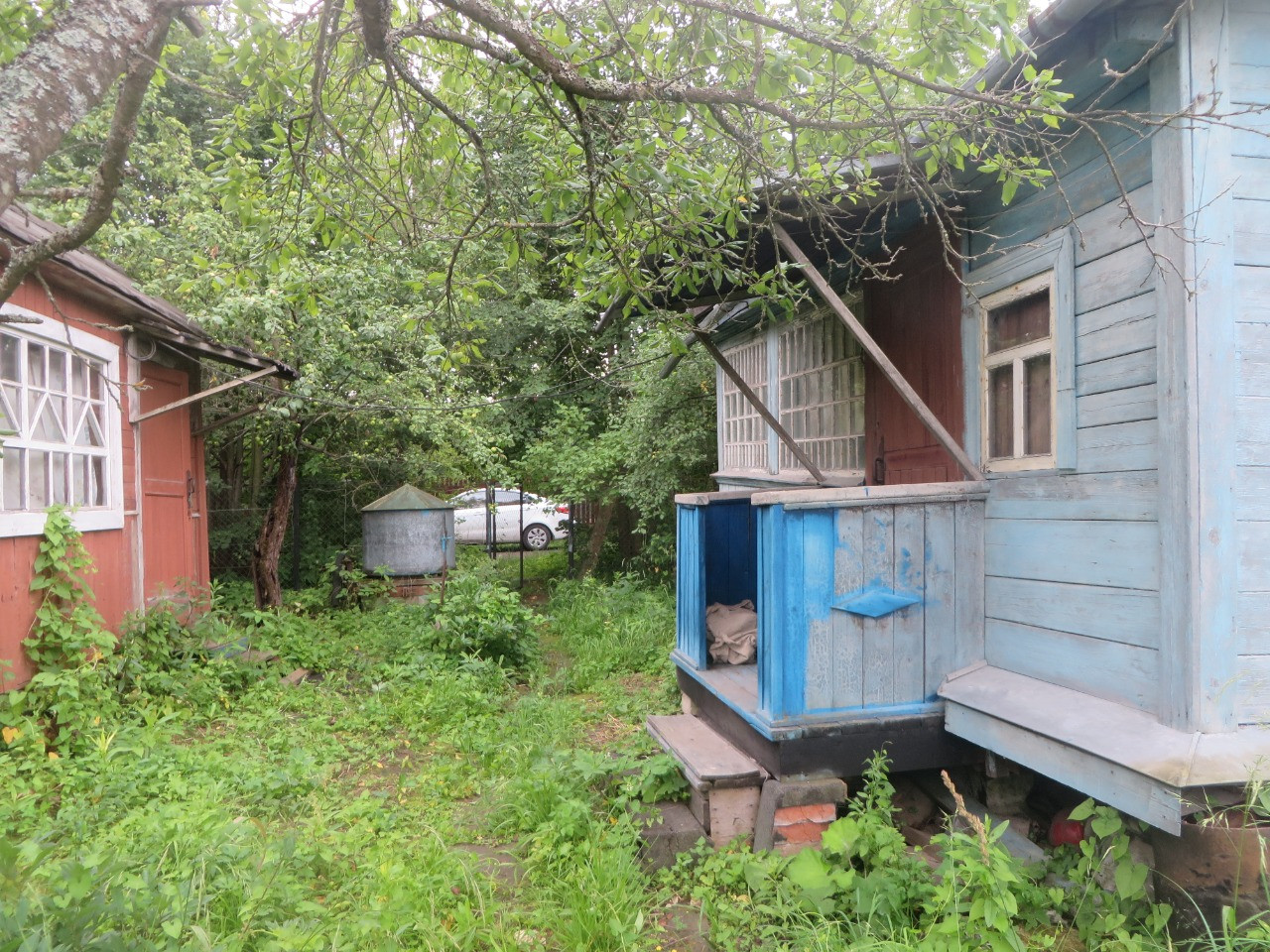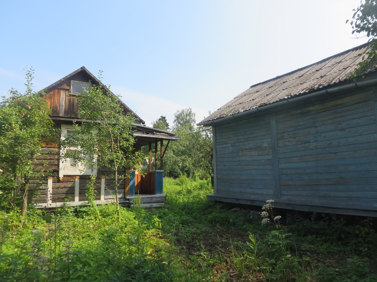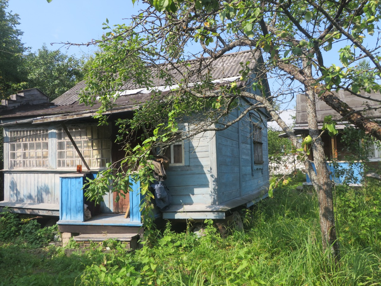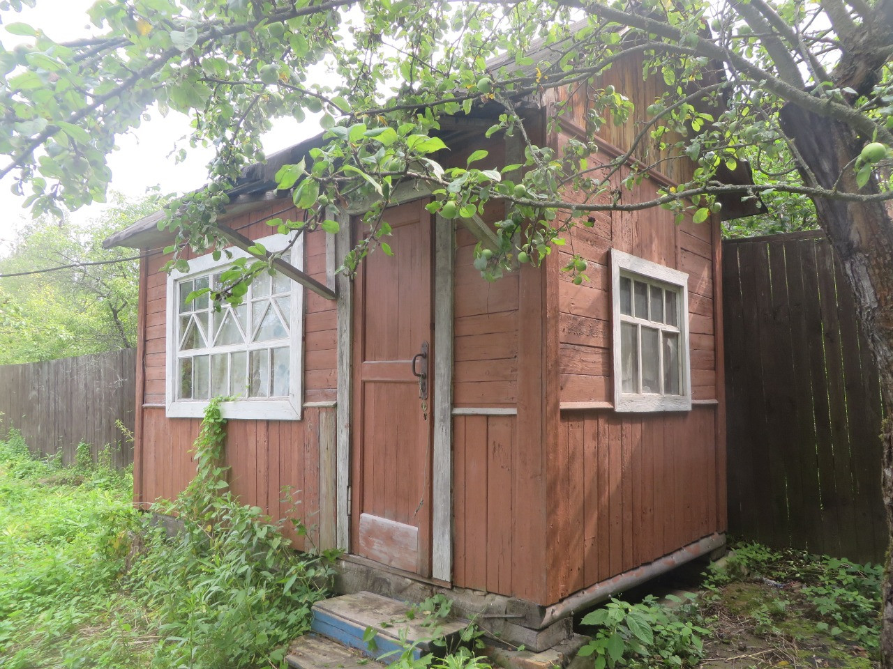 В садовом доме одна комната и терраса, крыша недавно перекрыта.