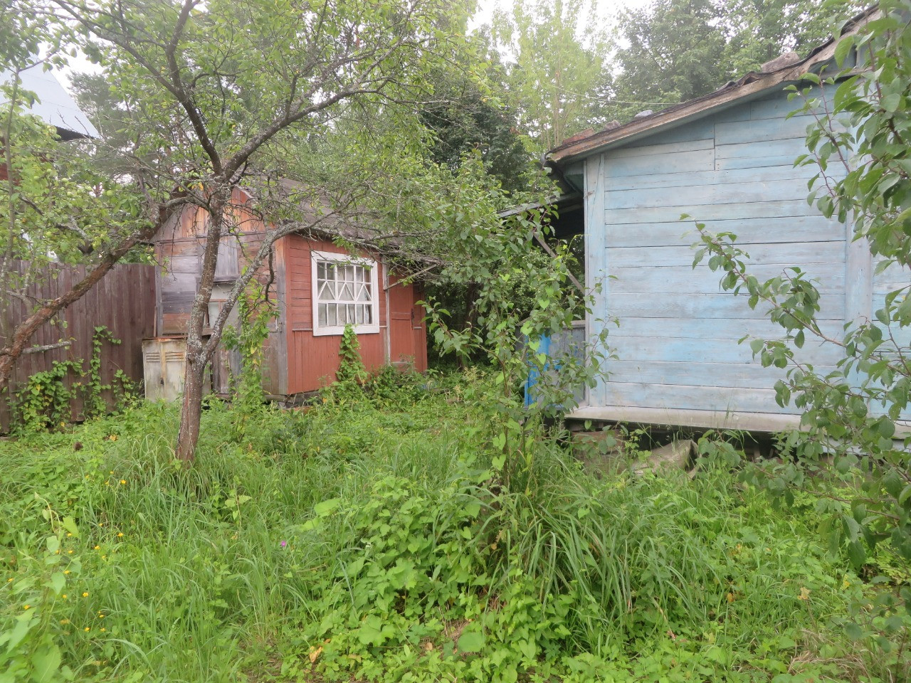 На участке три строения: садовый домик щитовой 20,8 кв.м., летняя кухня 7 кв.м. и домик из бруса 14 кв.м.
