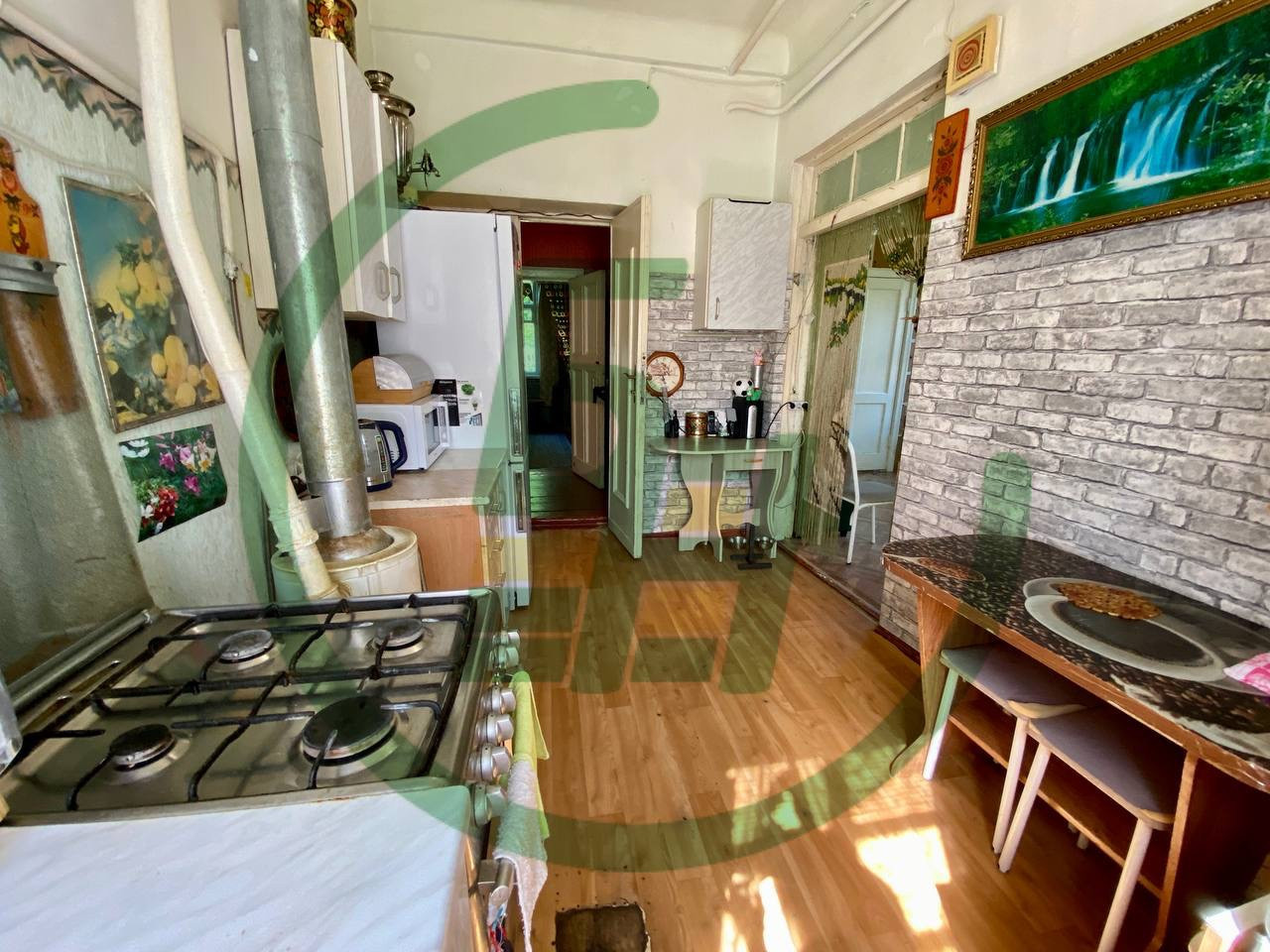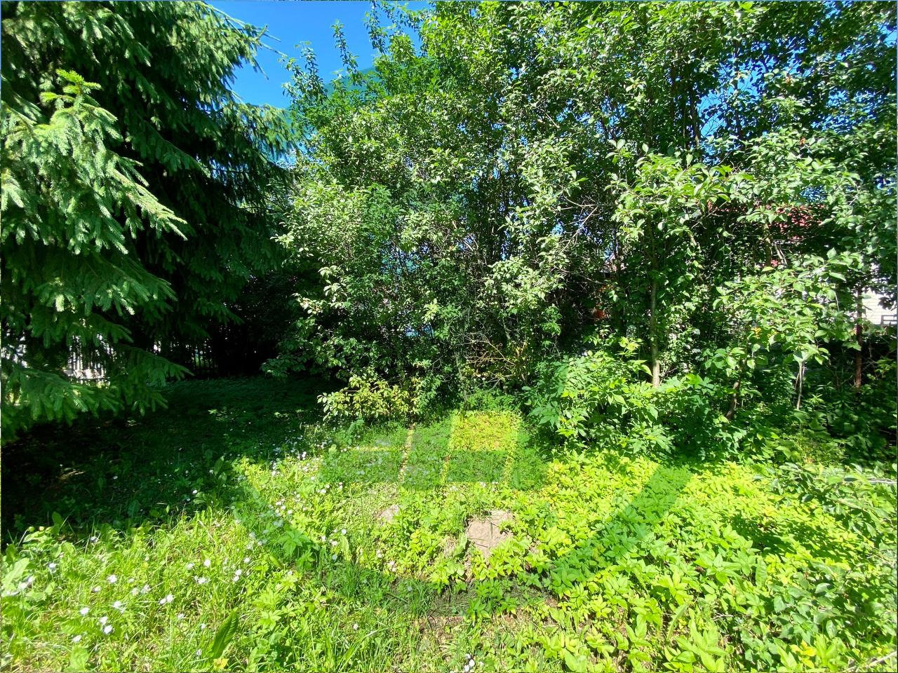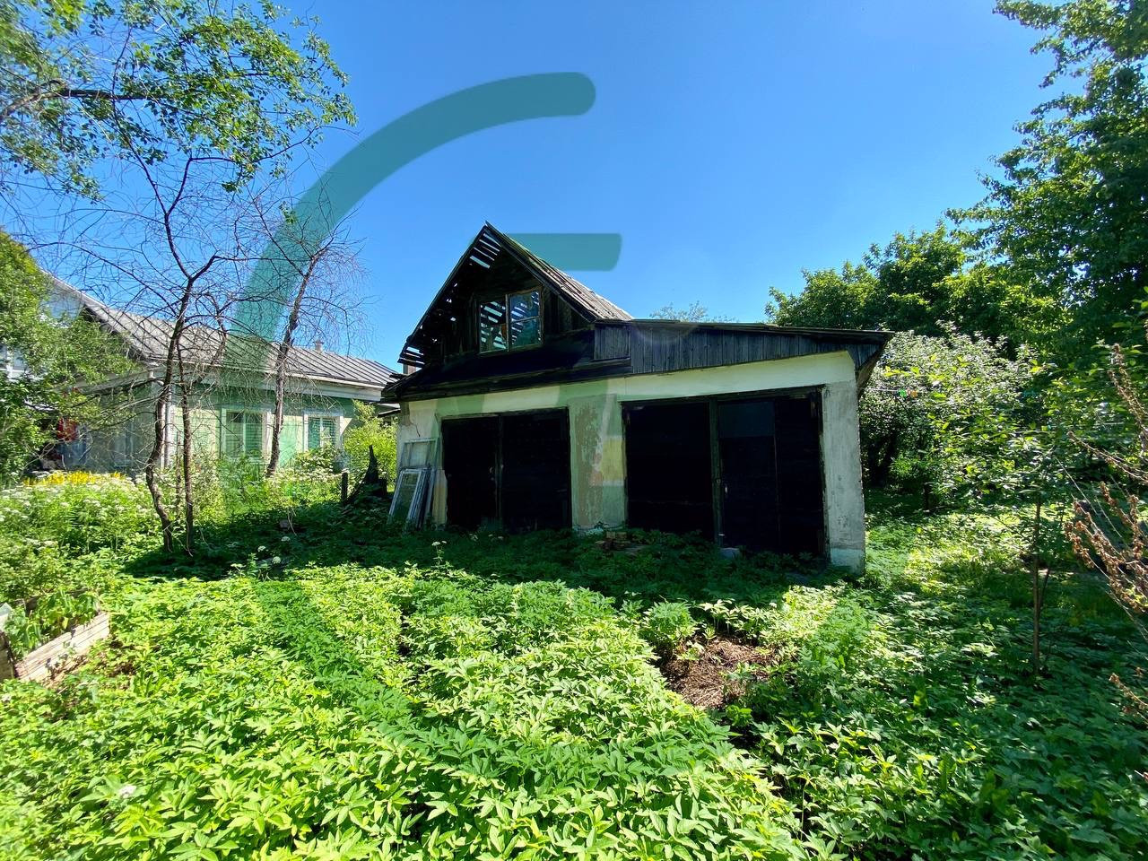 На участке капитальный гараж на две машины, и капитальный дом, вековые деревья. Все коммуникации городские. В доме трасса, 4 спальные комнаты, зал, кухня и раздельный санузел. Есть чердак. Состояние вполне жилое.