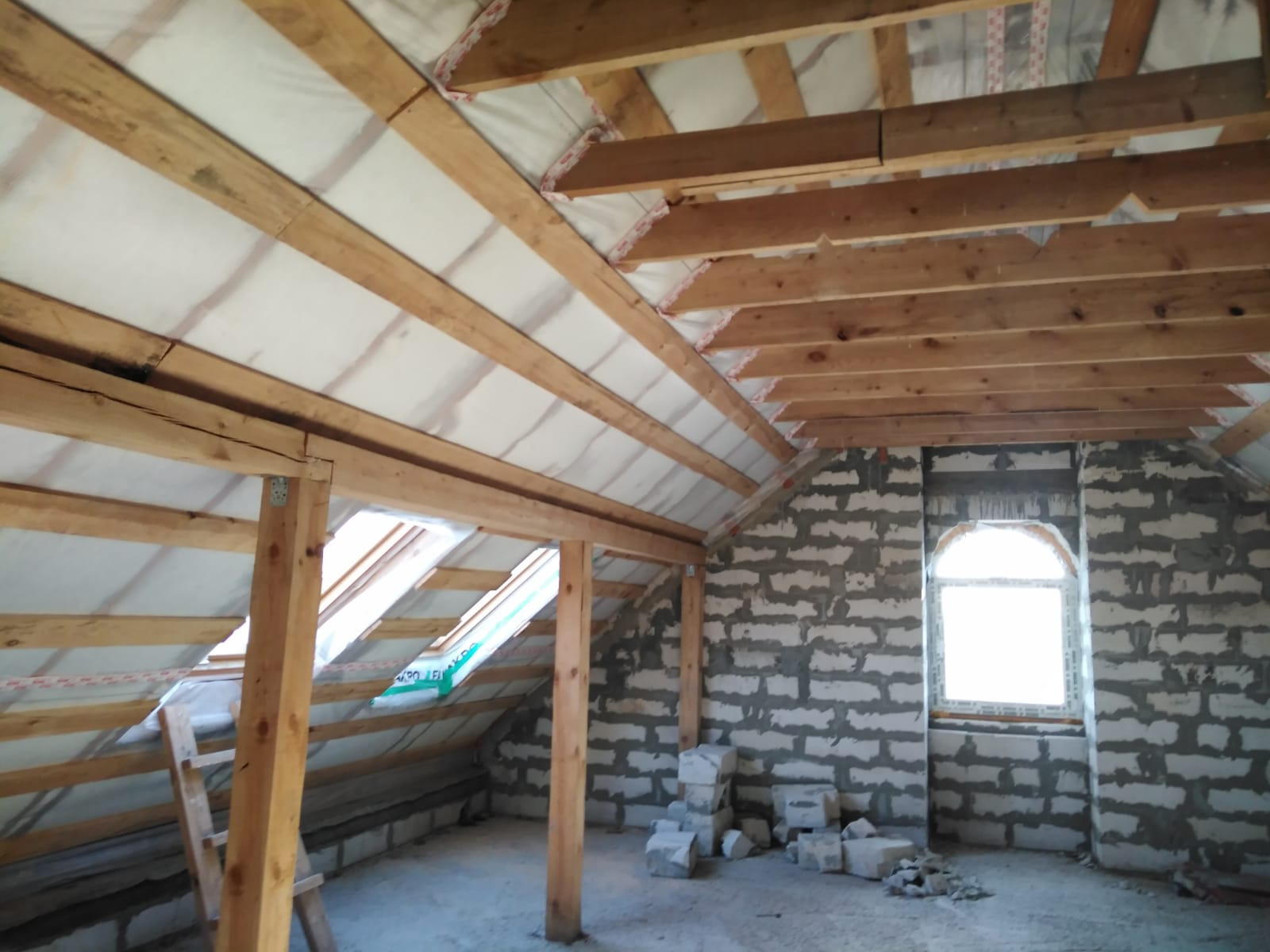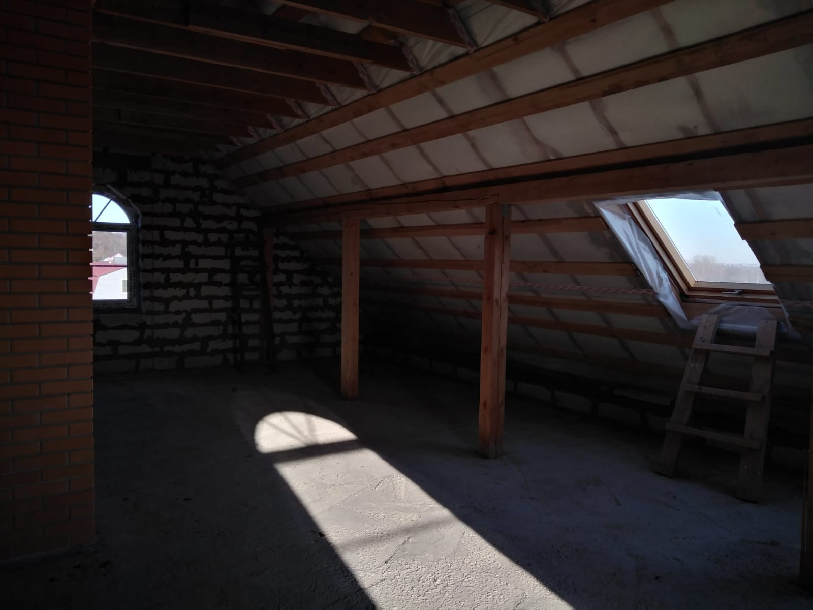 -мансардный этаж: светлое утепленное помещение 80 кв. м, 4 окна, 2 из них мансардные в крыше, свободная планировка.