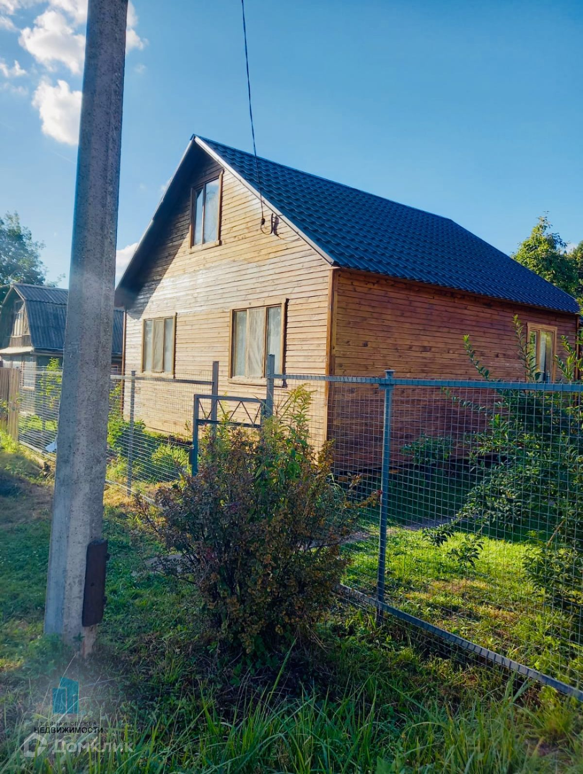 На участке двухэтажный каркасный дом 7х7 с утеплением 100мм. На первом этаже большая кухня-гостиная и 2 спальни. На втором этаже большая мансарда. Электричество заведено в дом.